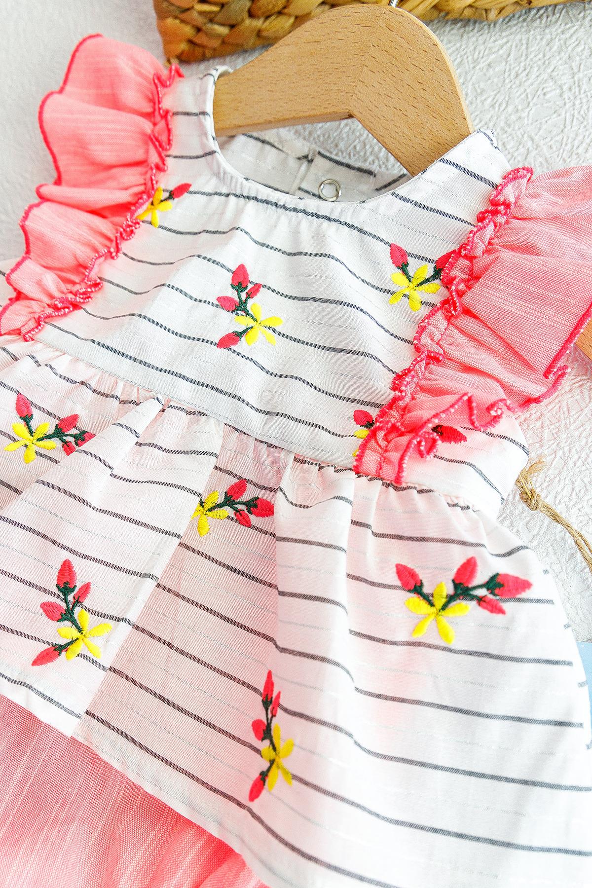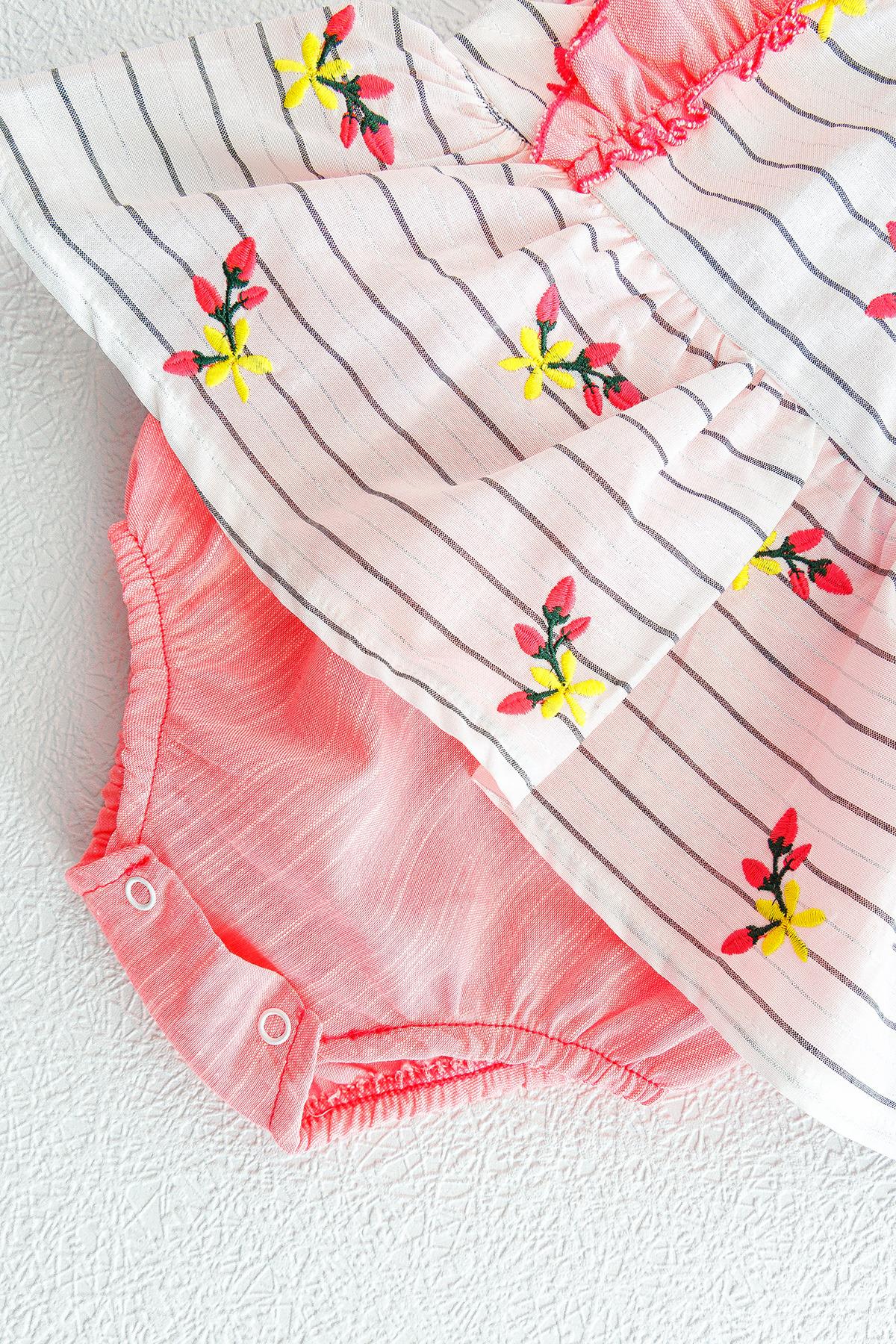 Çiçek İşlemeli Kız Bebek Tulum