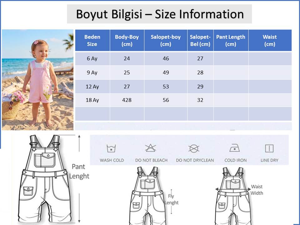 - Kız bebek salopet 2 parcadan oluşur salopet ve body olarak
