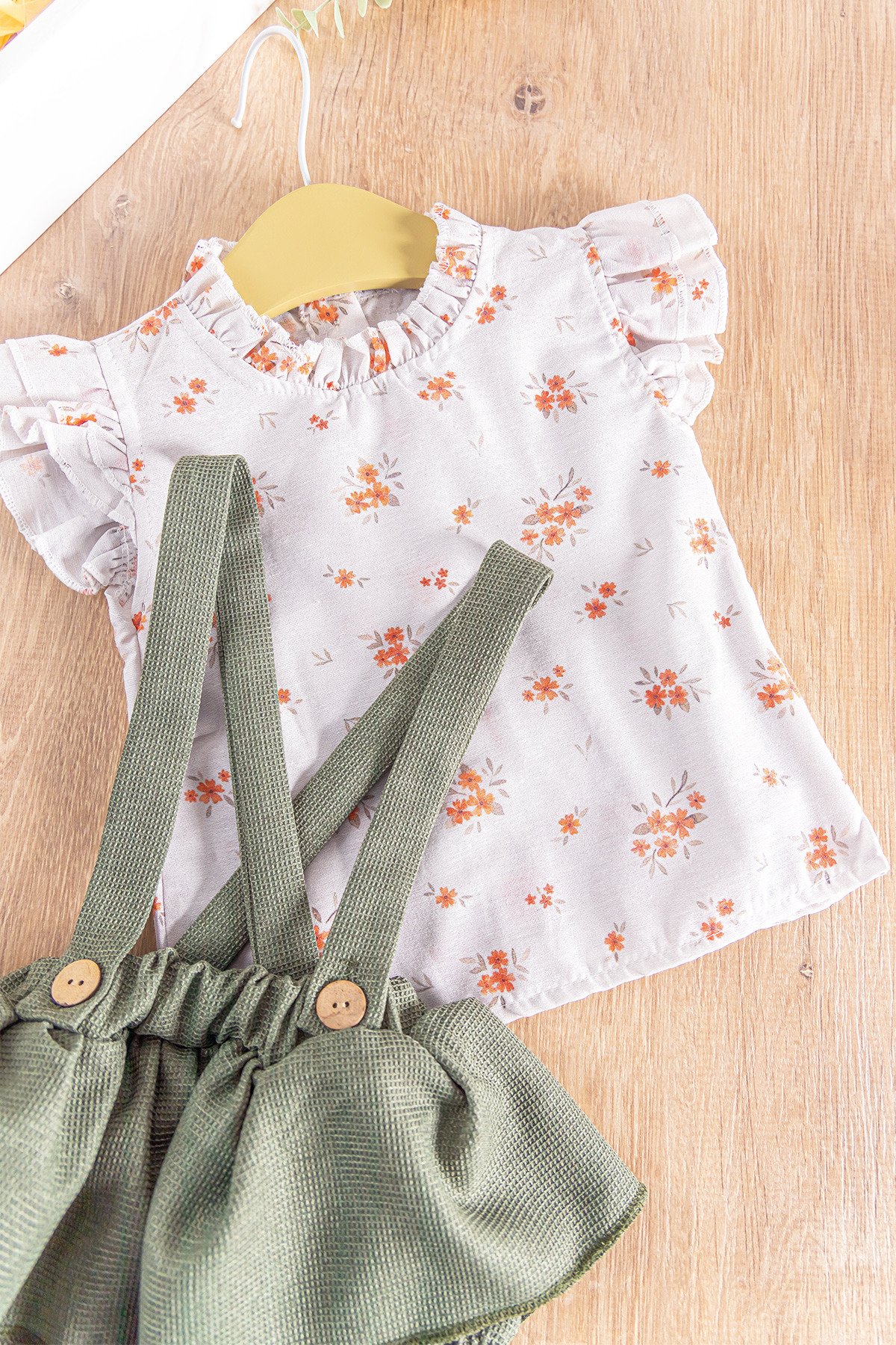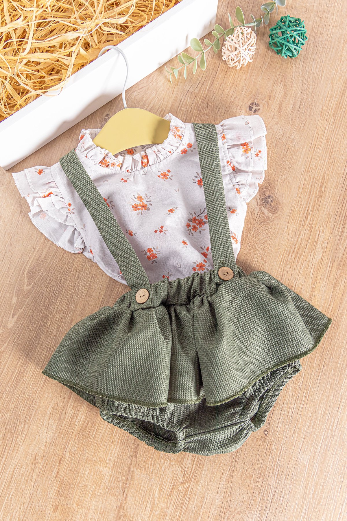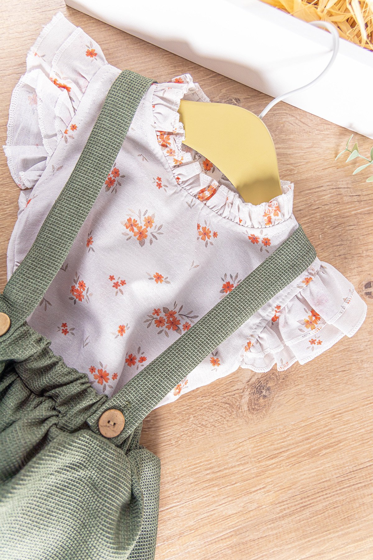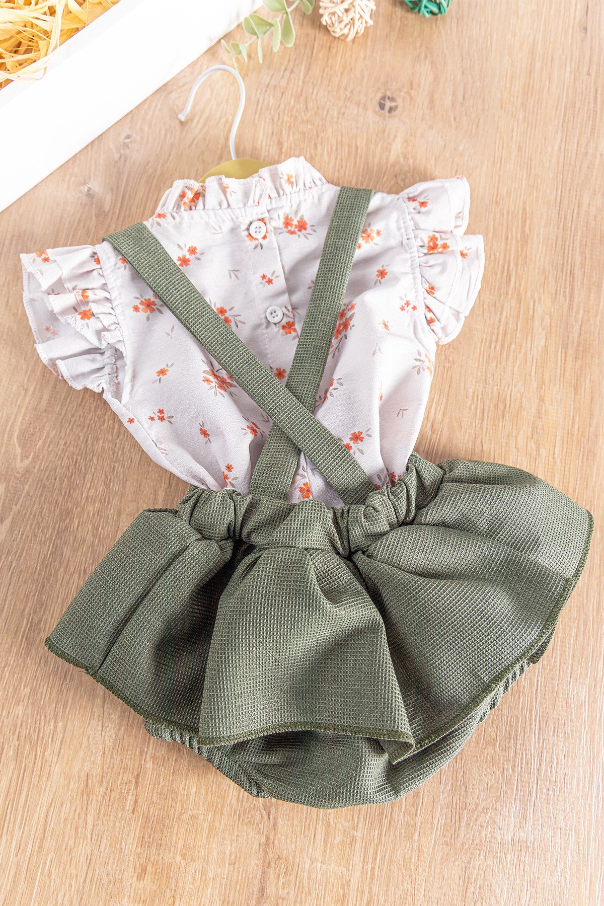 Çiçekli Gömlekli Yazlık Kız Bebek Salopet Elbise Takım
