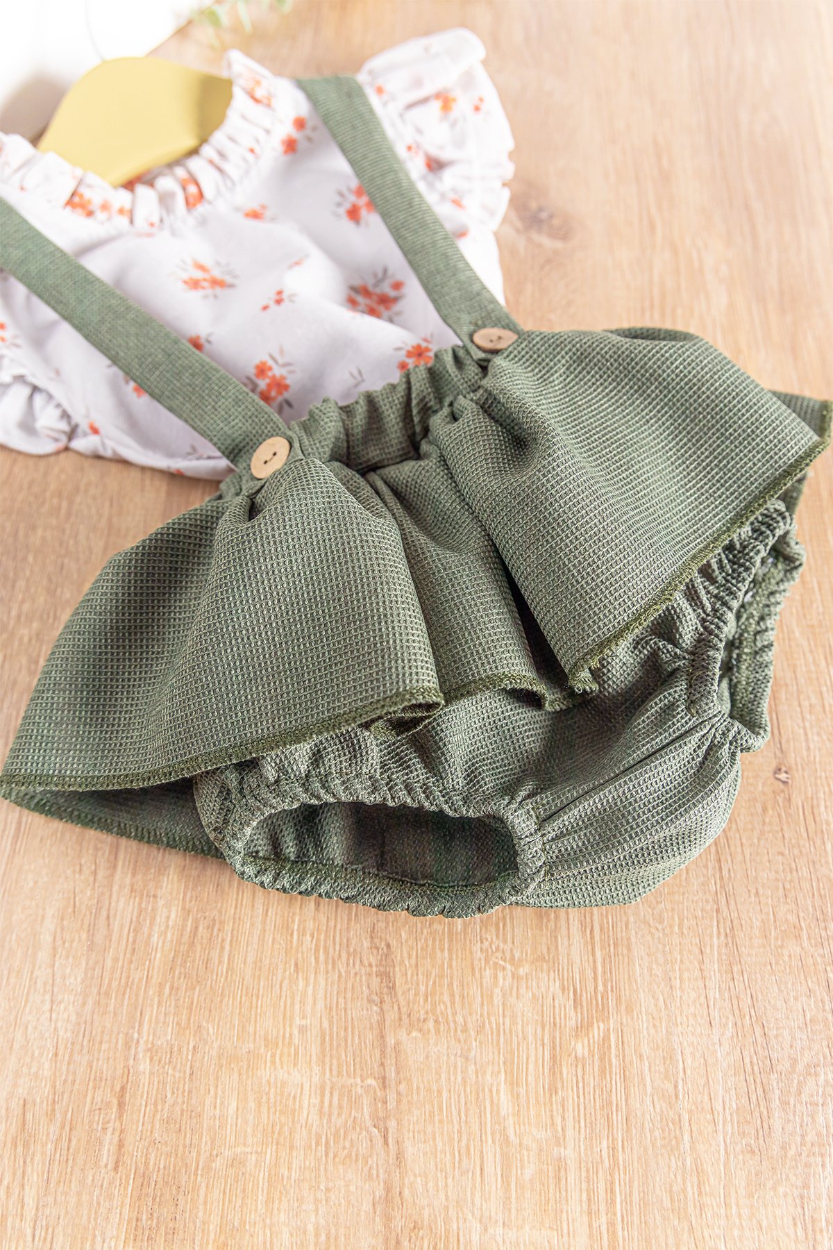Çiçekli Gömlekli Yazlık Kız Bebek Salopet Elbise Takım YEŞİL - 9-12 AY