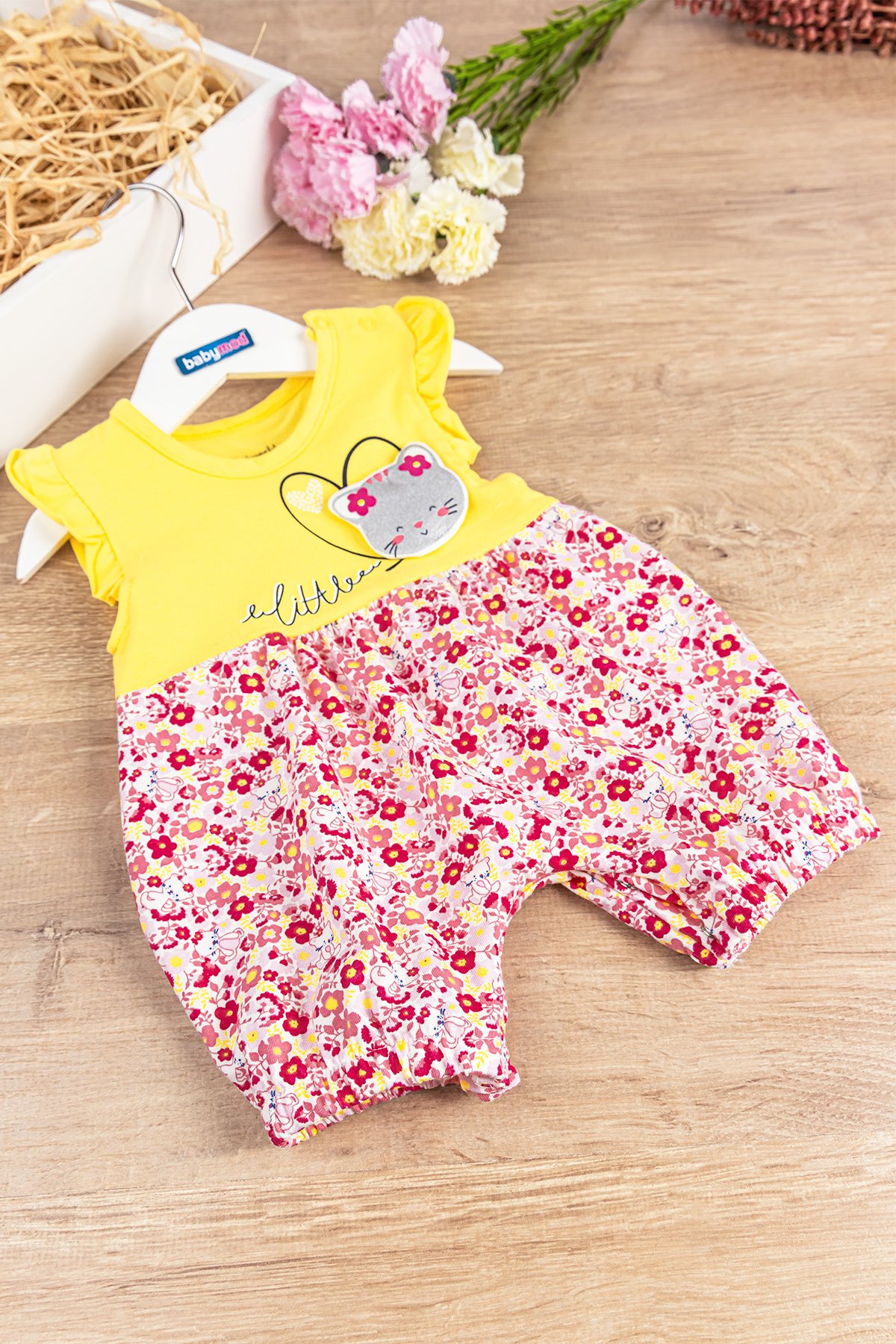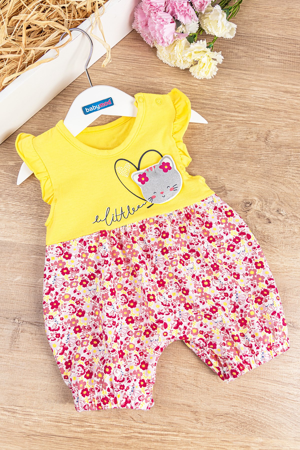 Babymod Flower Cat Figured Baby Girl Rompers
