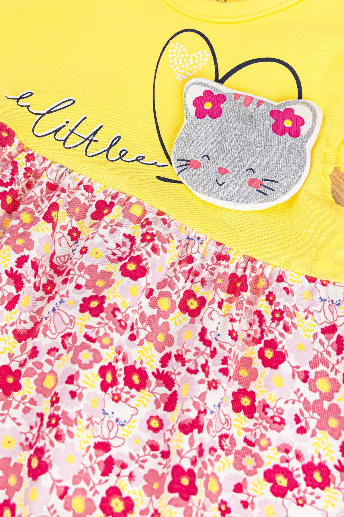 Çiçekli Kedi Figürlü Kız Bebek Tulum