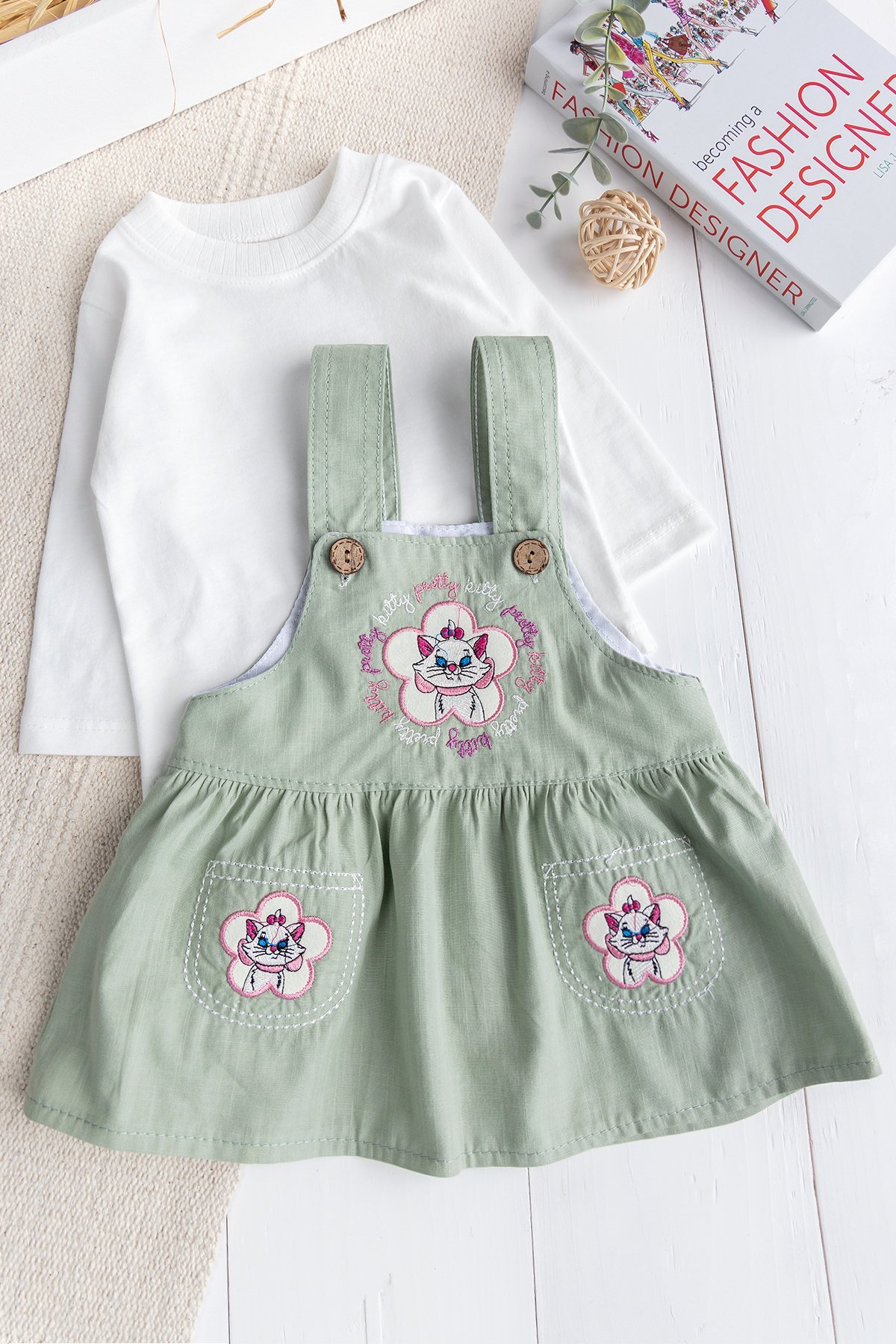 Babymod Flowered Cat Embroidered 100% Cotton Baby Girl Saopet Dress Vest