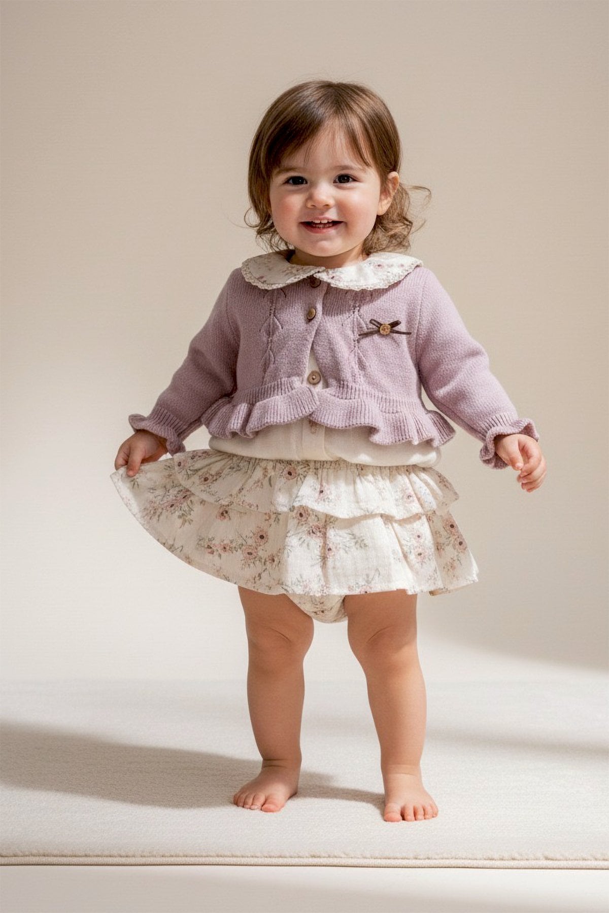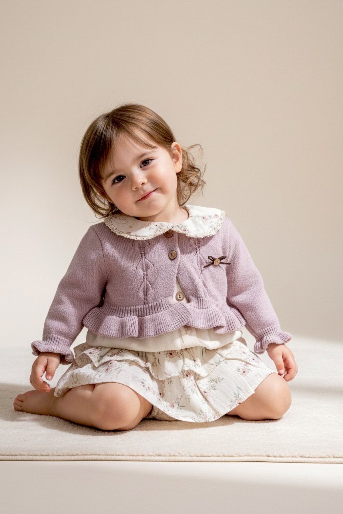 - Kız bebek hırka triko iplikten üretilmiştir