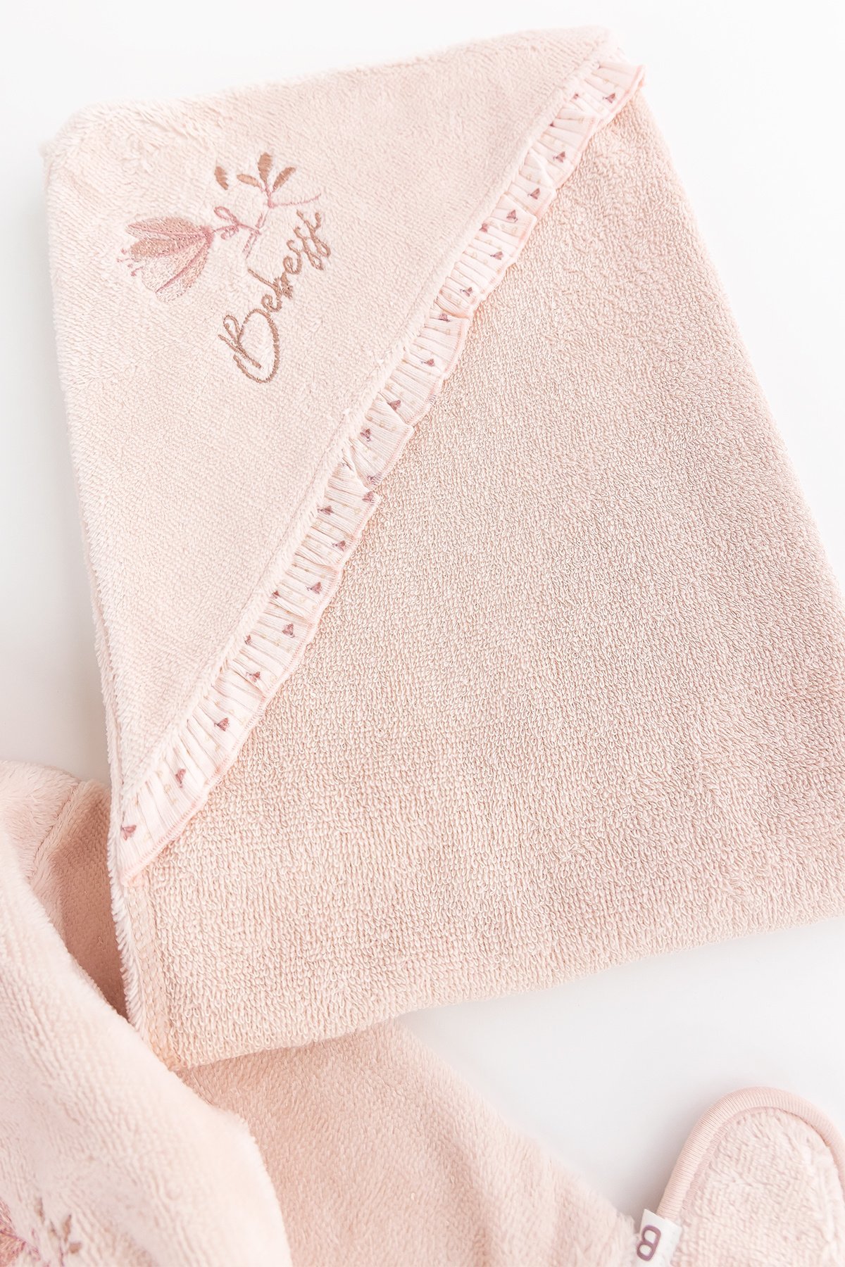 Babymod Floral Embroidered Ruffle 3 Piece Cotton Baby Girl Towel Bathrobe Set