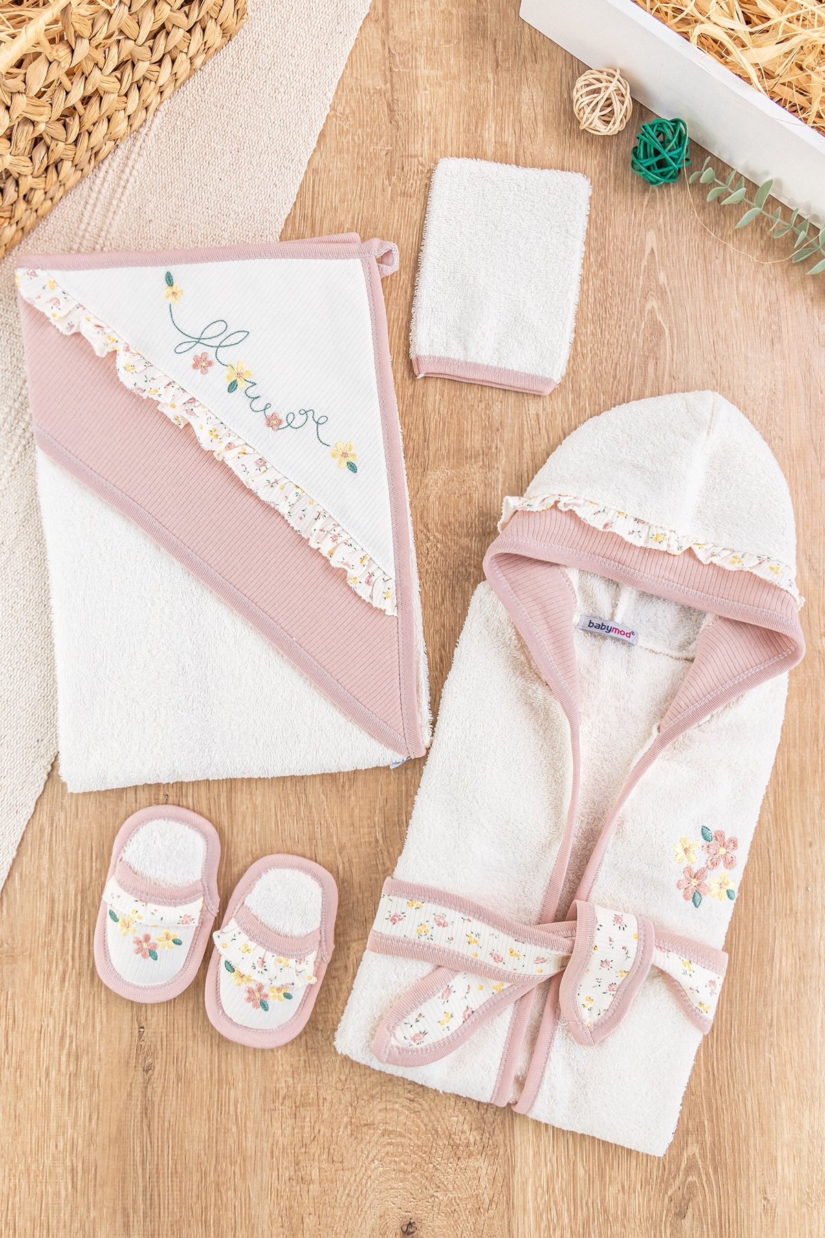 - Bebek havlunun baş kısmı çiçekli fırfırlıdır.