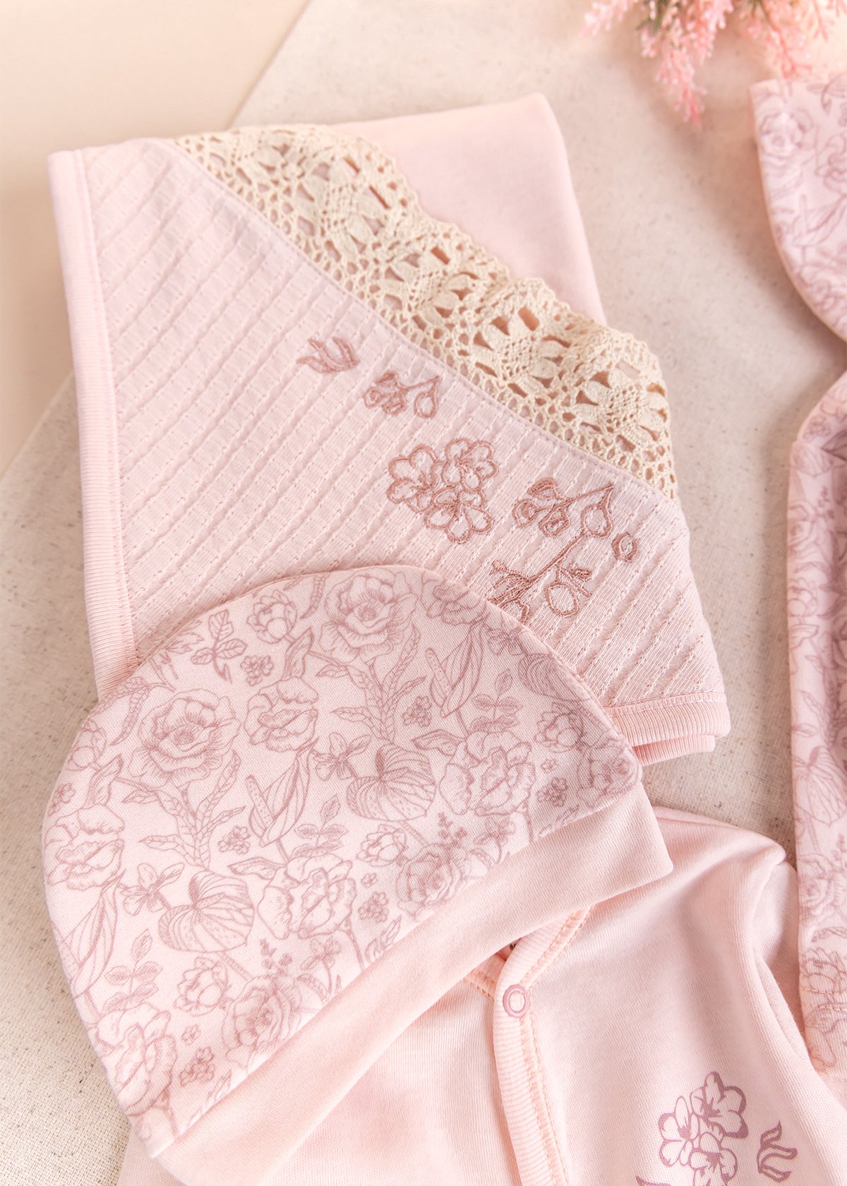 - Kız bebek battaniye çiçekli ve dantel süslemelidir