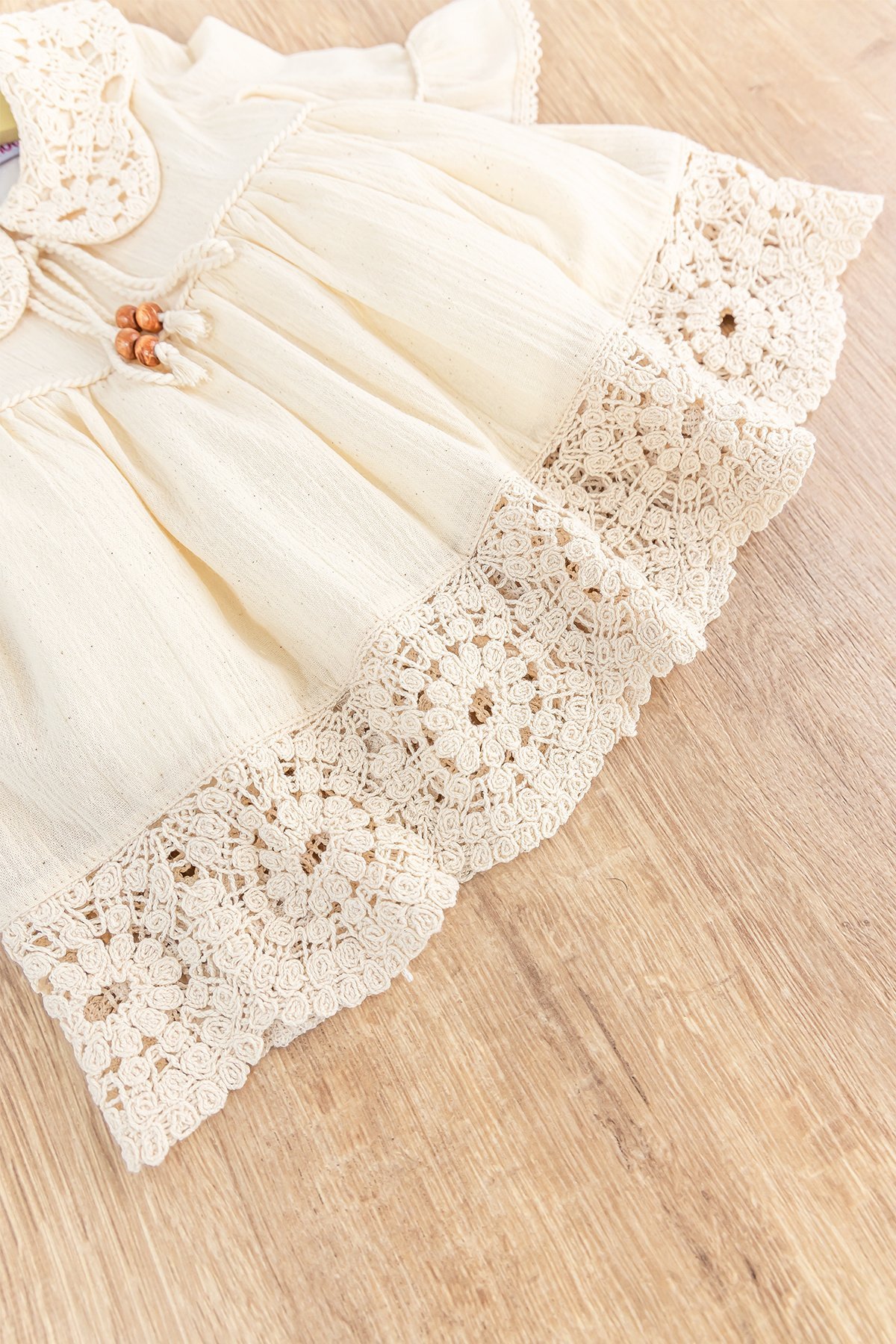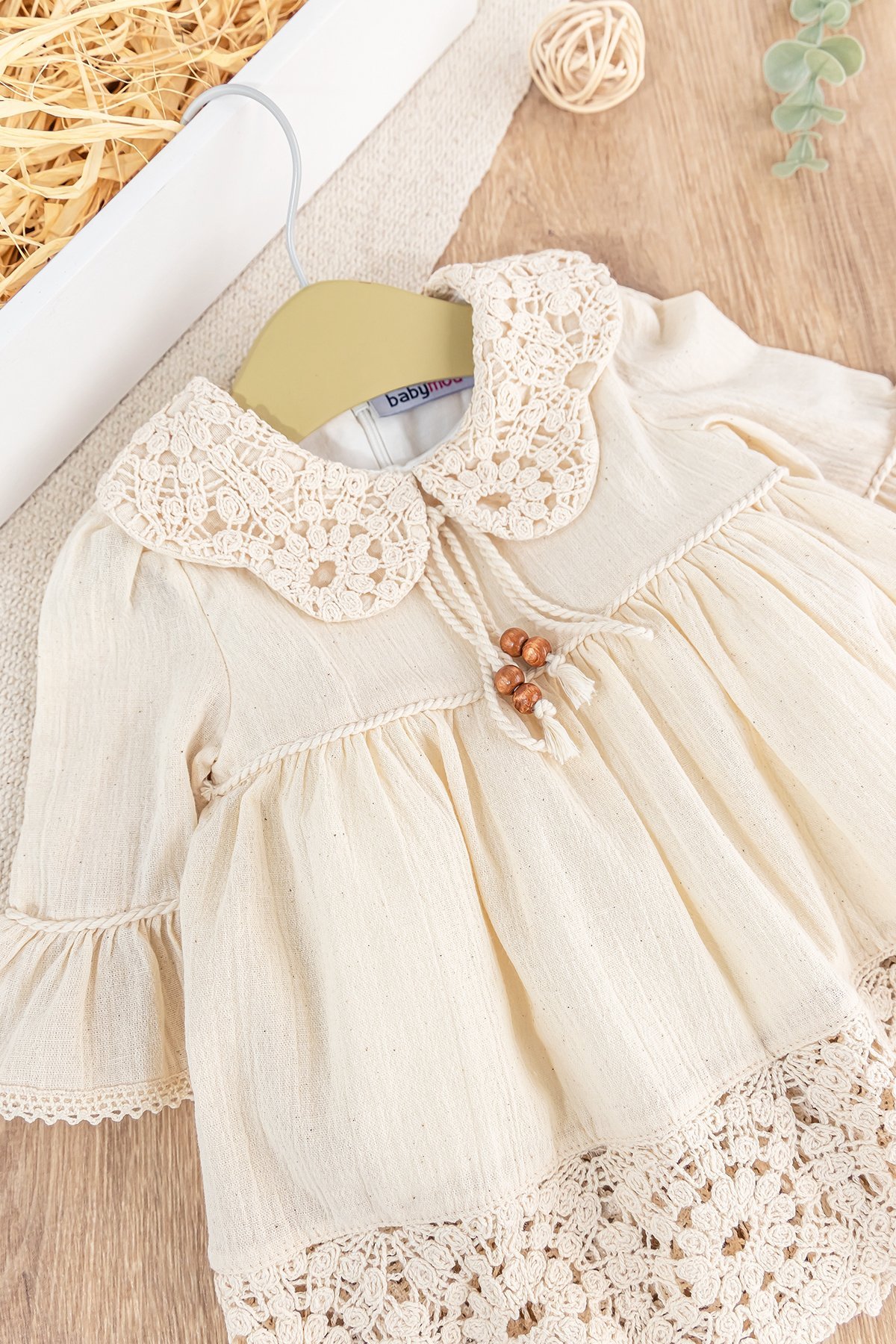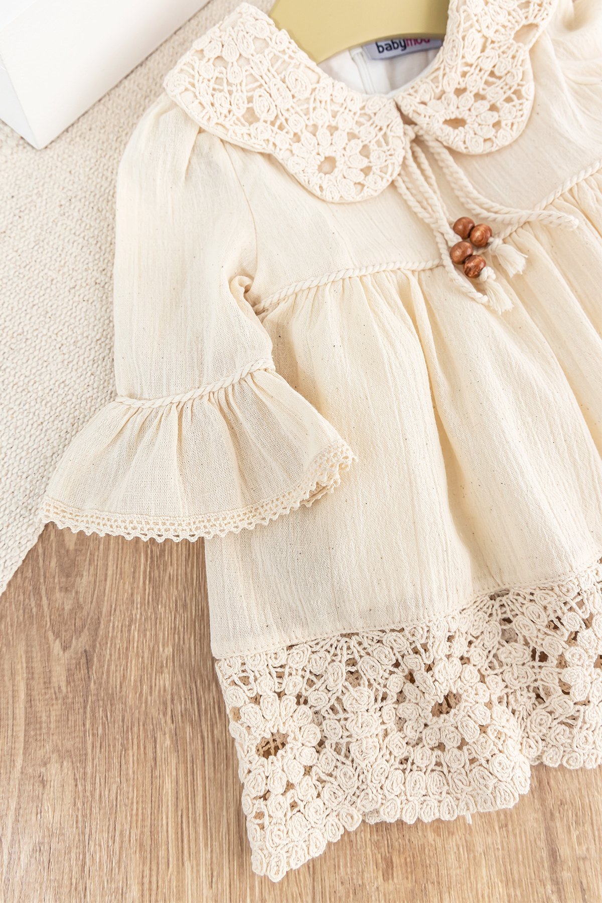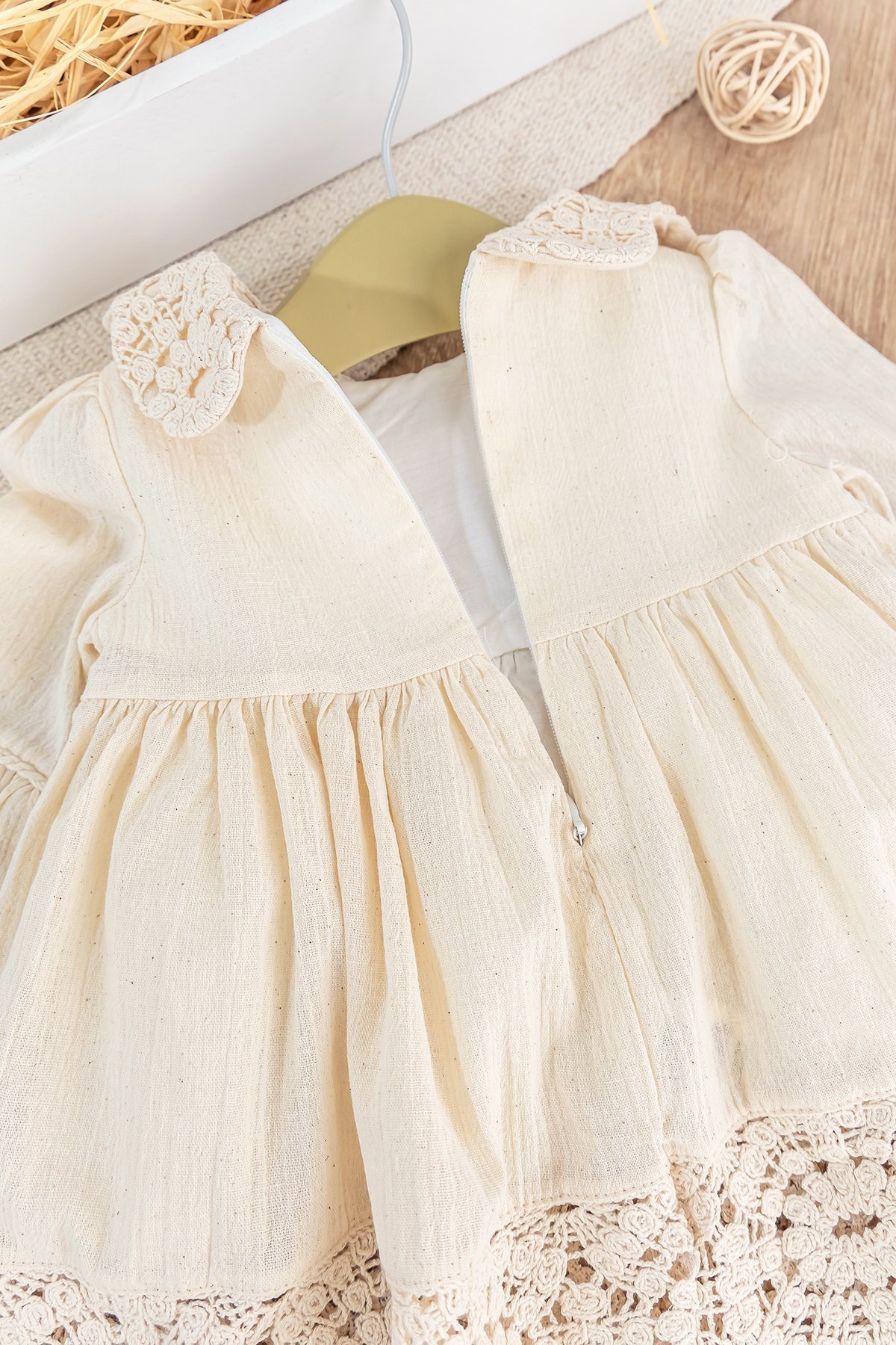Dantel Detaylı Dokuma Kumaş Kız Bebek Elbise
