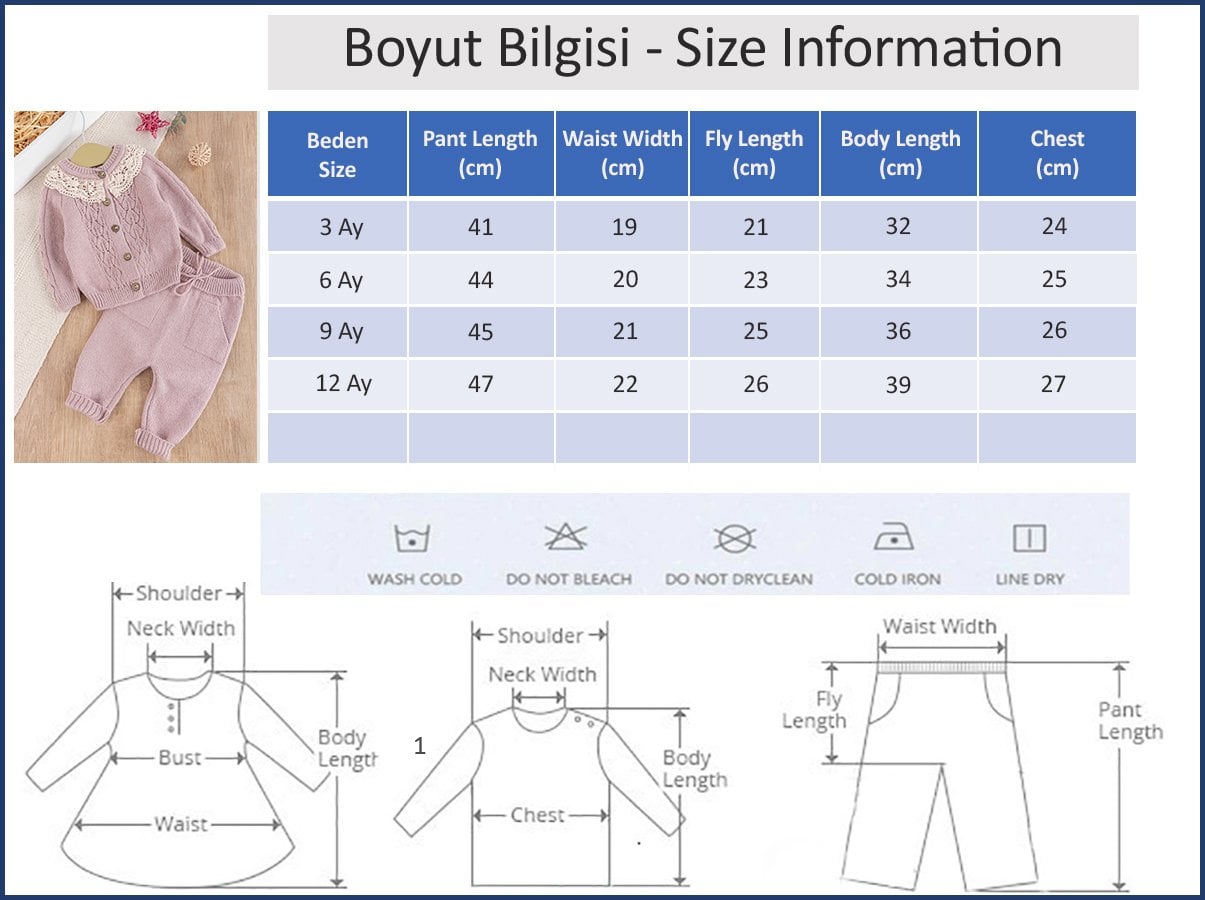 - Bebek takımı örgü makinalarında üretilmiştir.