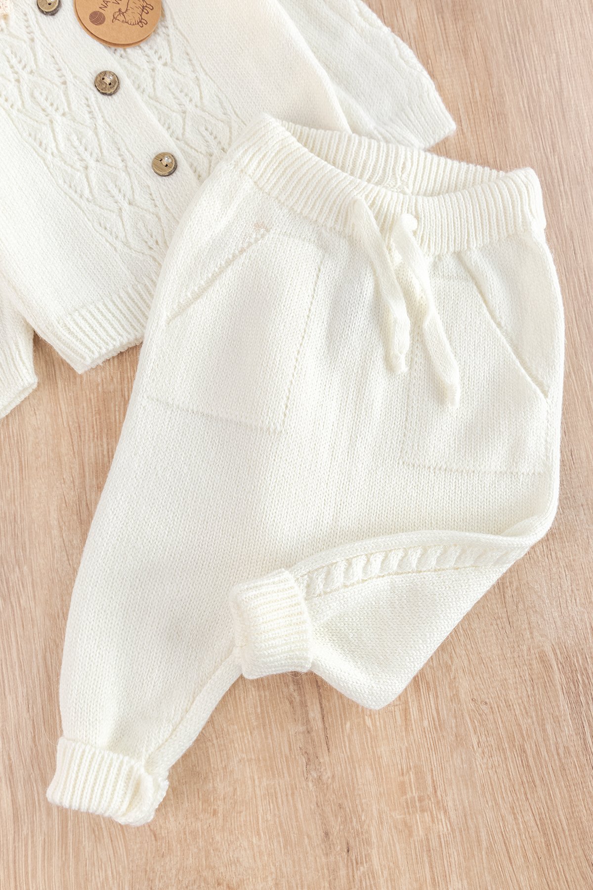 - The baby set is produced on knitting machines.