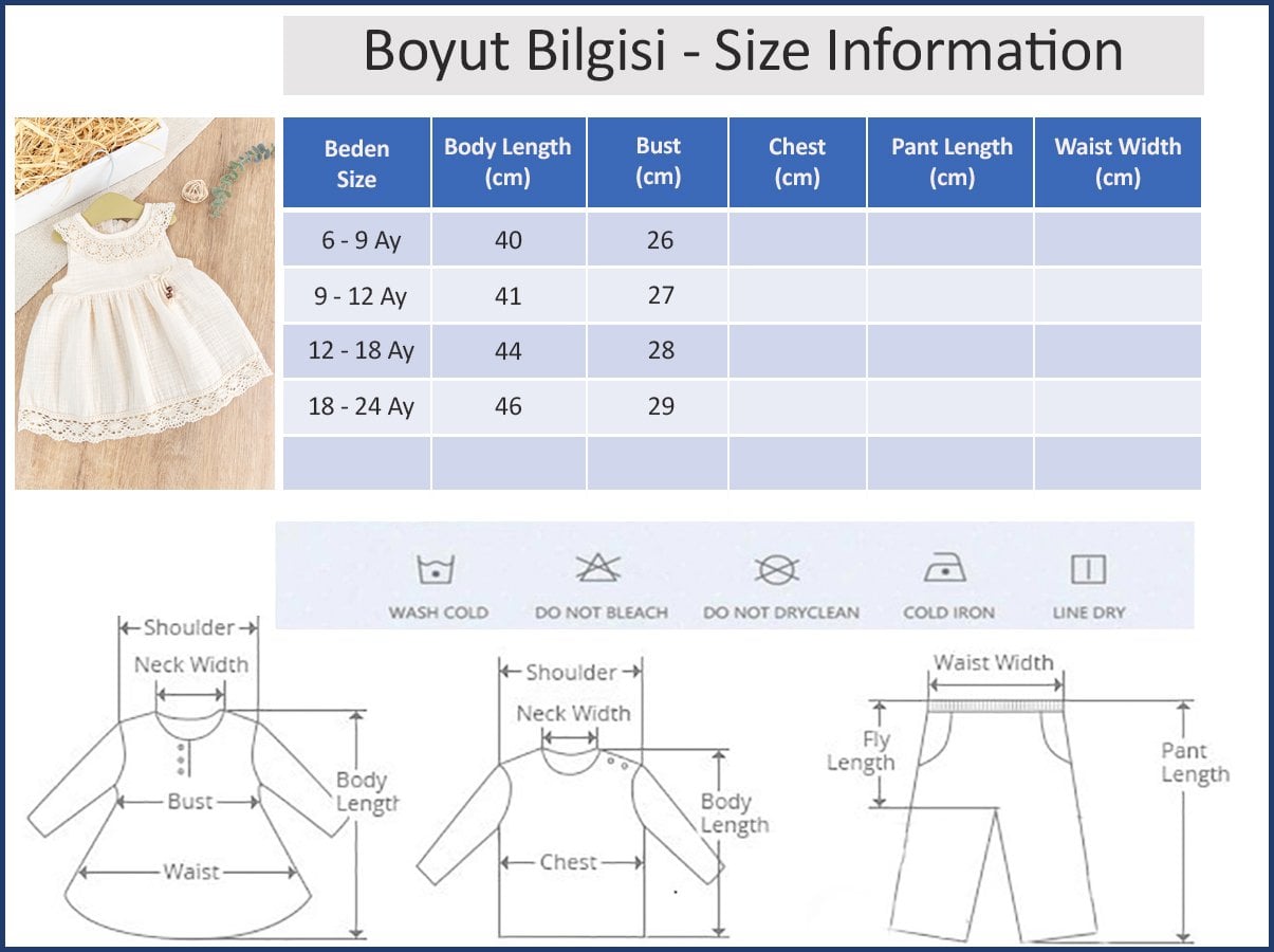 - Bebek elbise soft dokulu pamuklu müslin kumaş ile üretilmiştir.