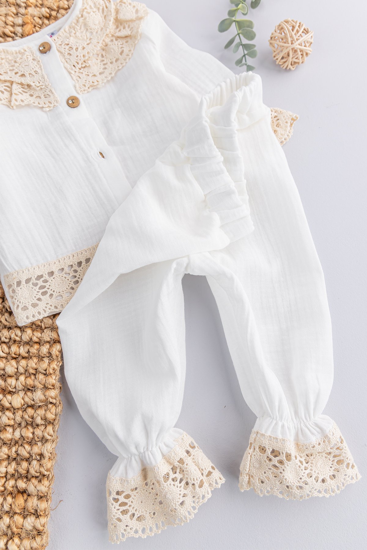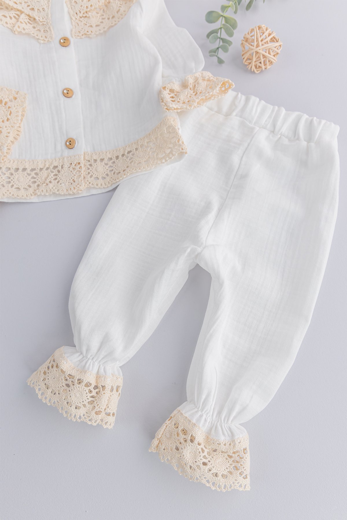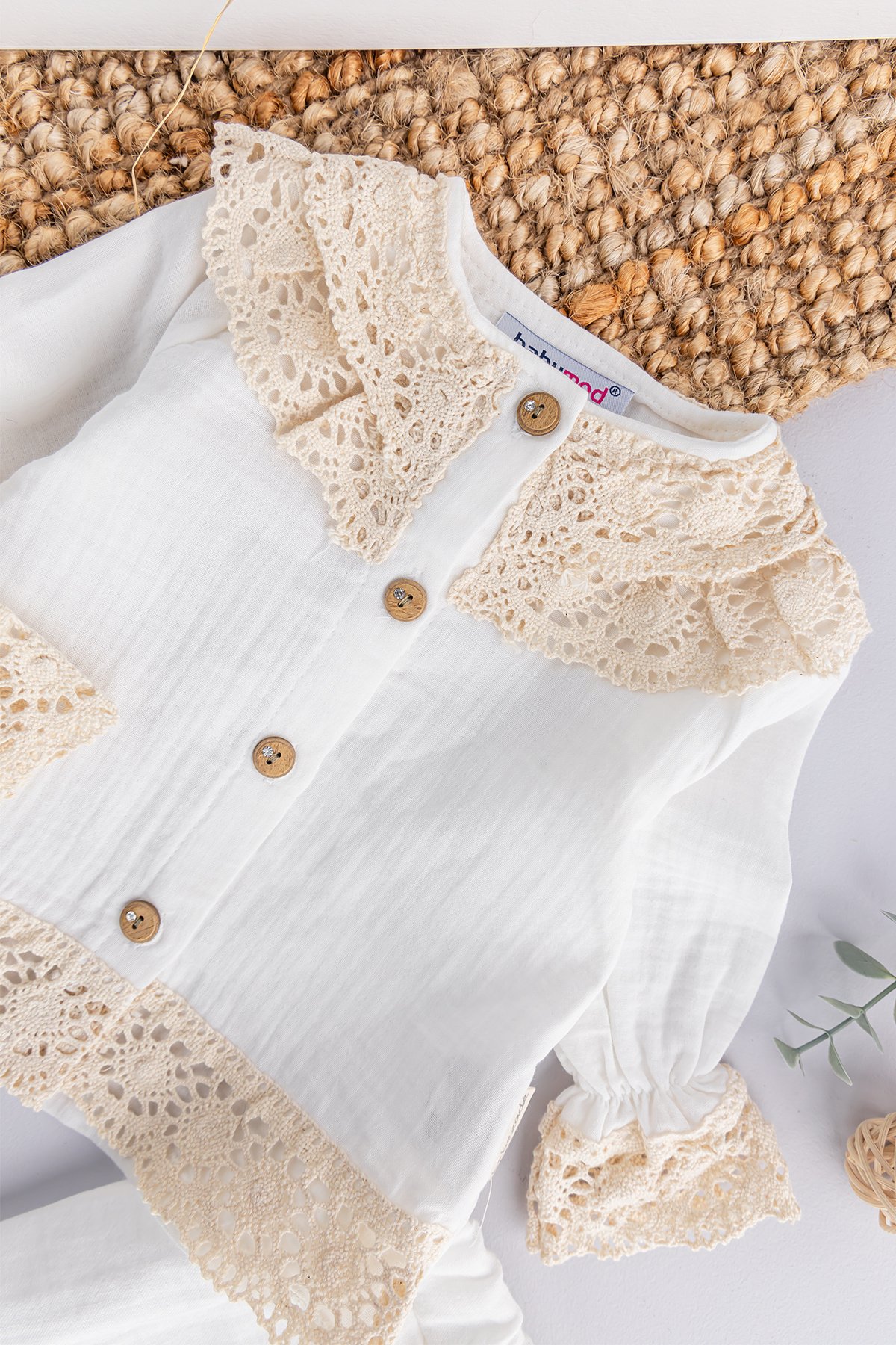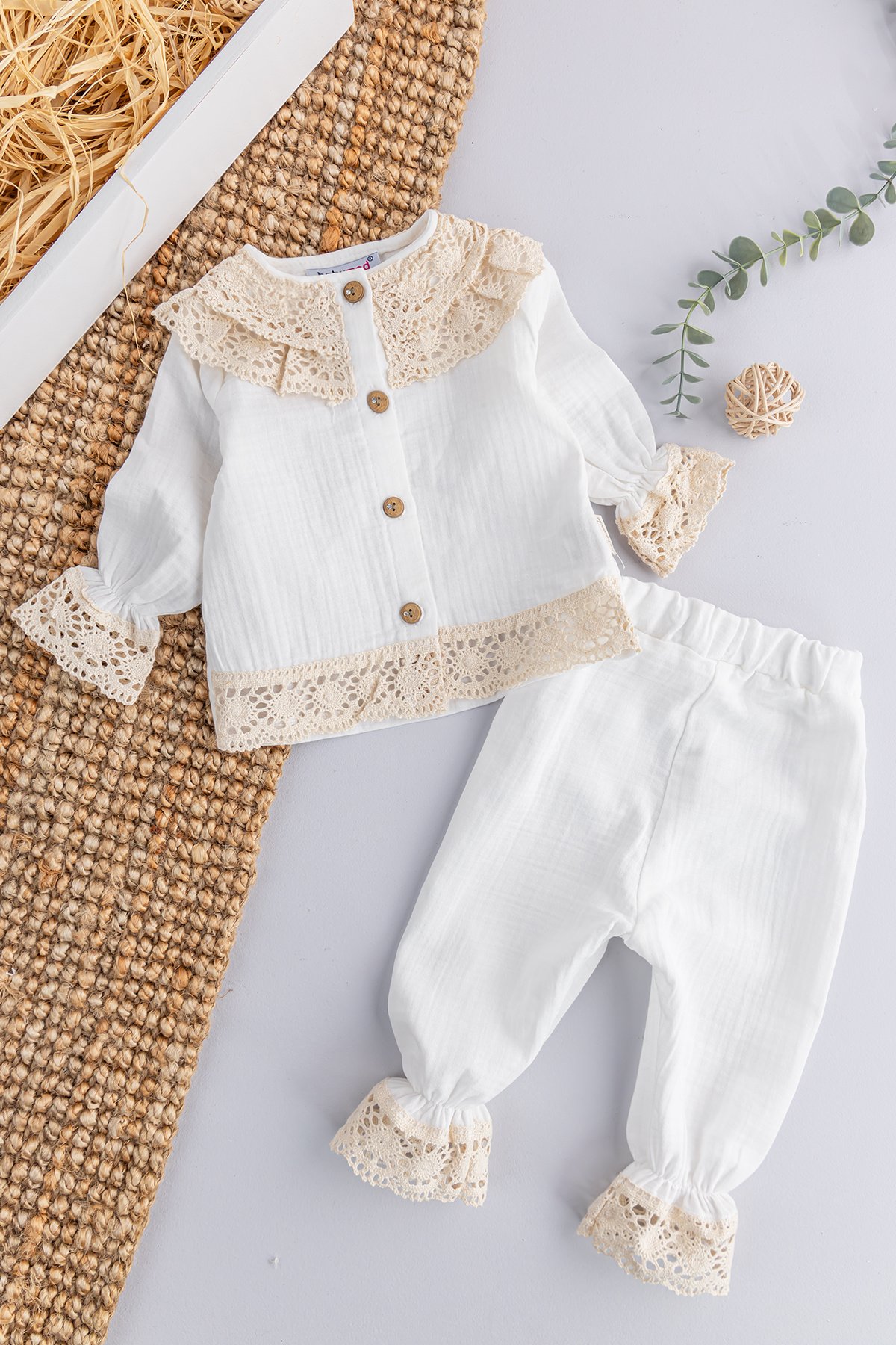 Babymod Lace Collar Detailed 2-Piece Baby Girl Set, Top and Bottom Baby Set