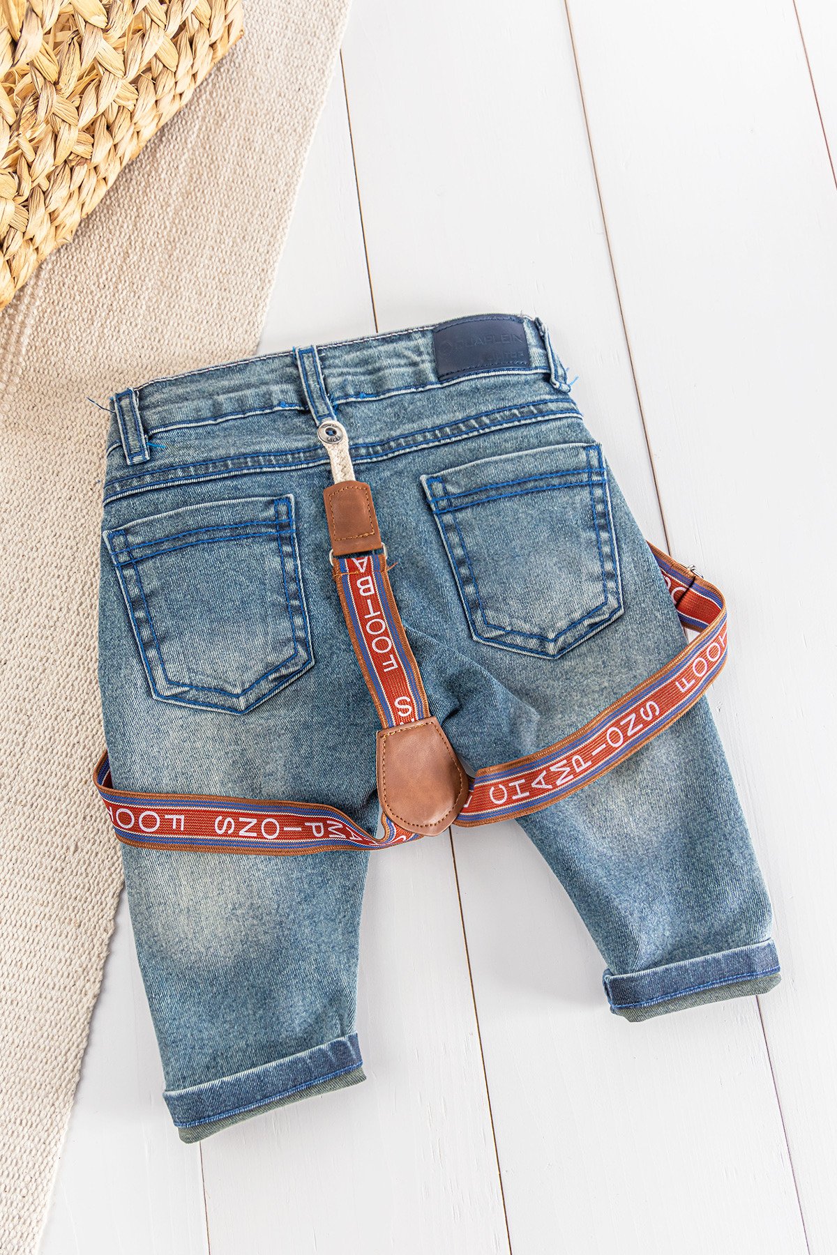 Denim Kumaş Askılı Erkek Bebek Kot Pantolon