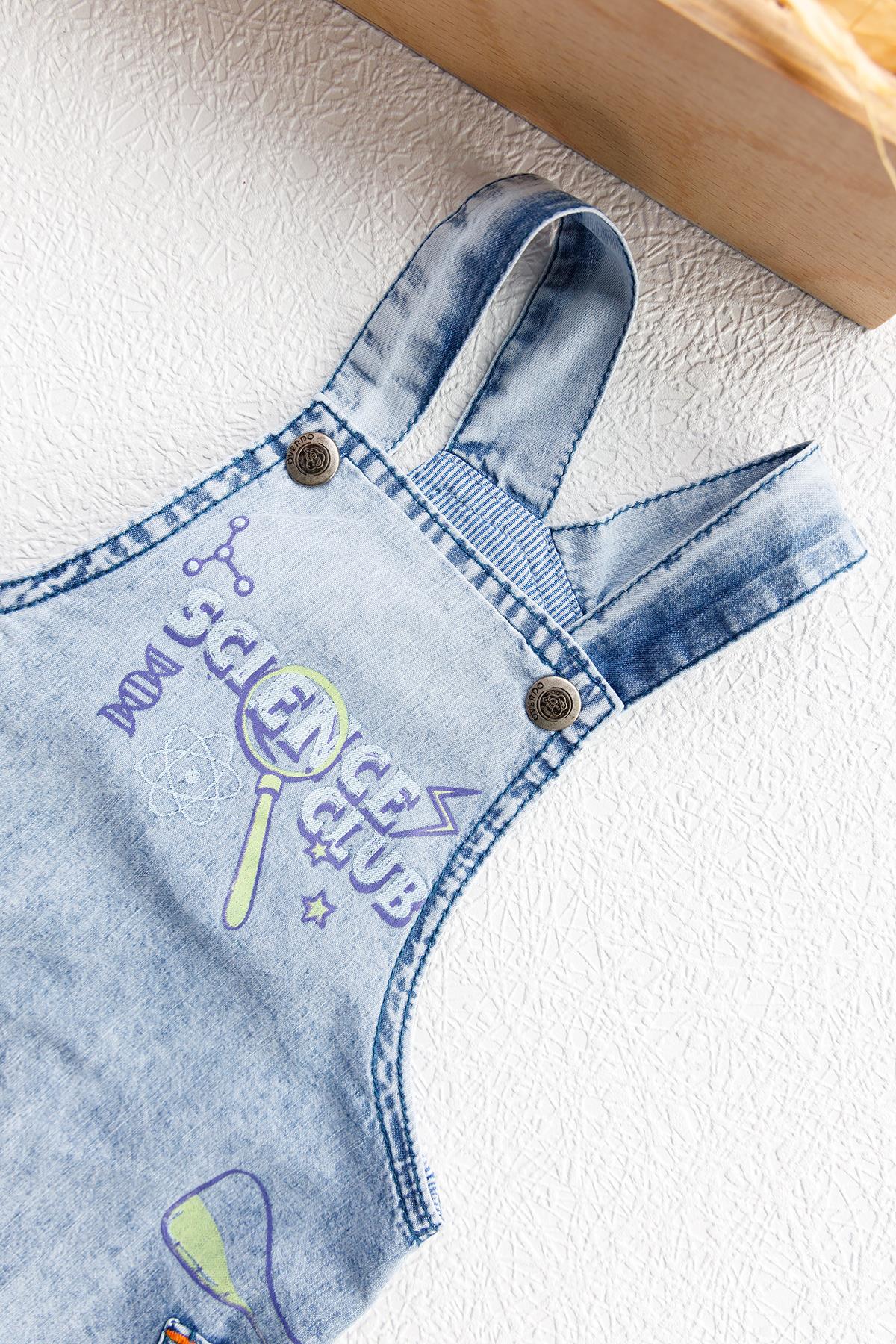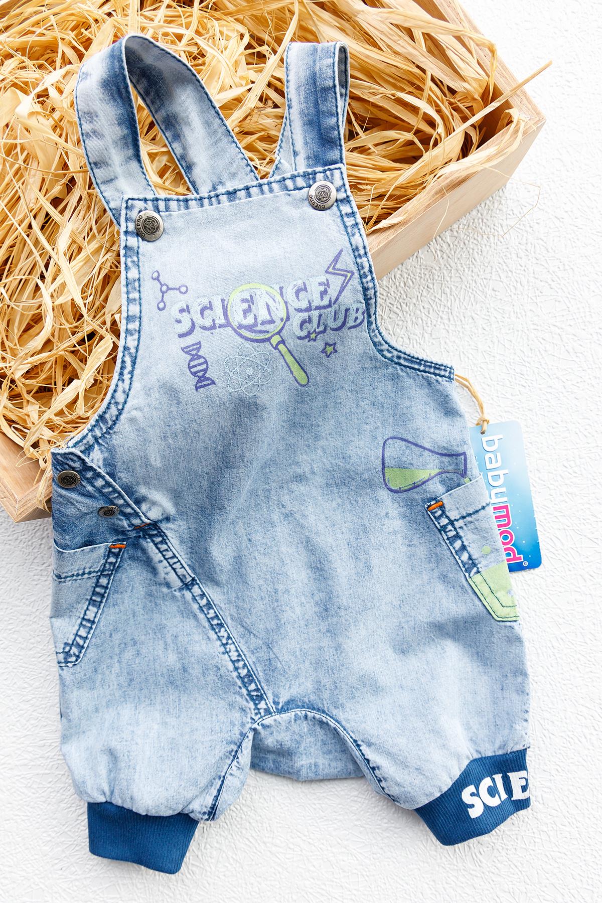 Denim Kumaş Cep Detaylı Erkek Bebek Kot Tulum Salopet