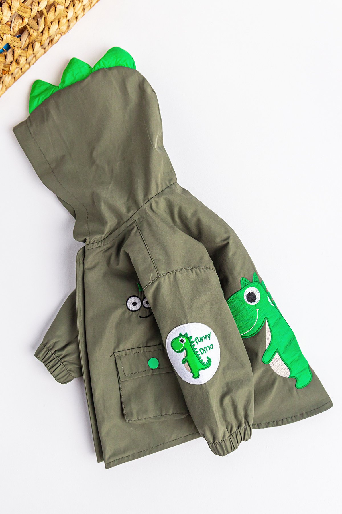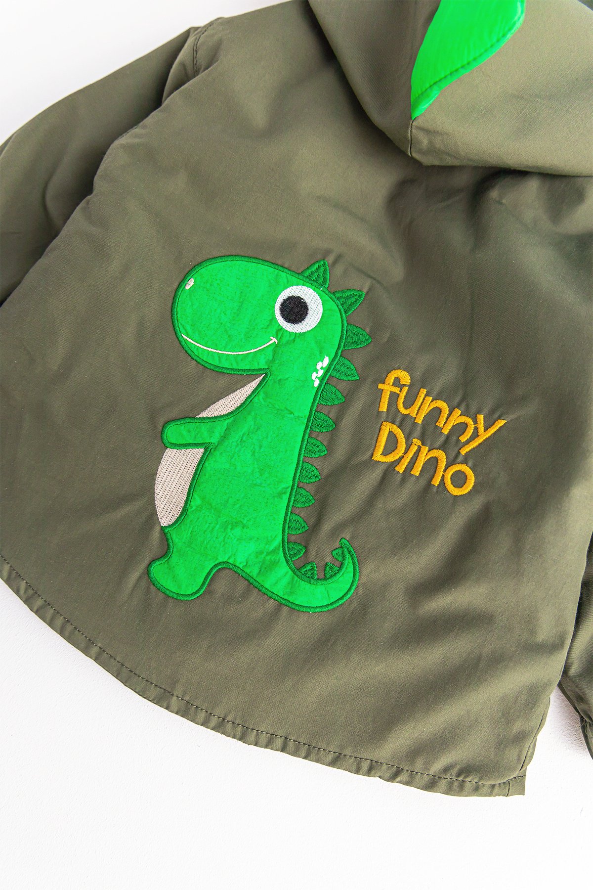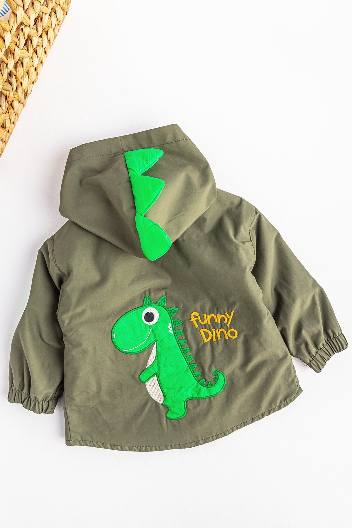Dino Figürlü Kapüşonlu İçi Peluş Astarlı Erkek Bebek Mont