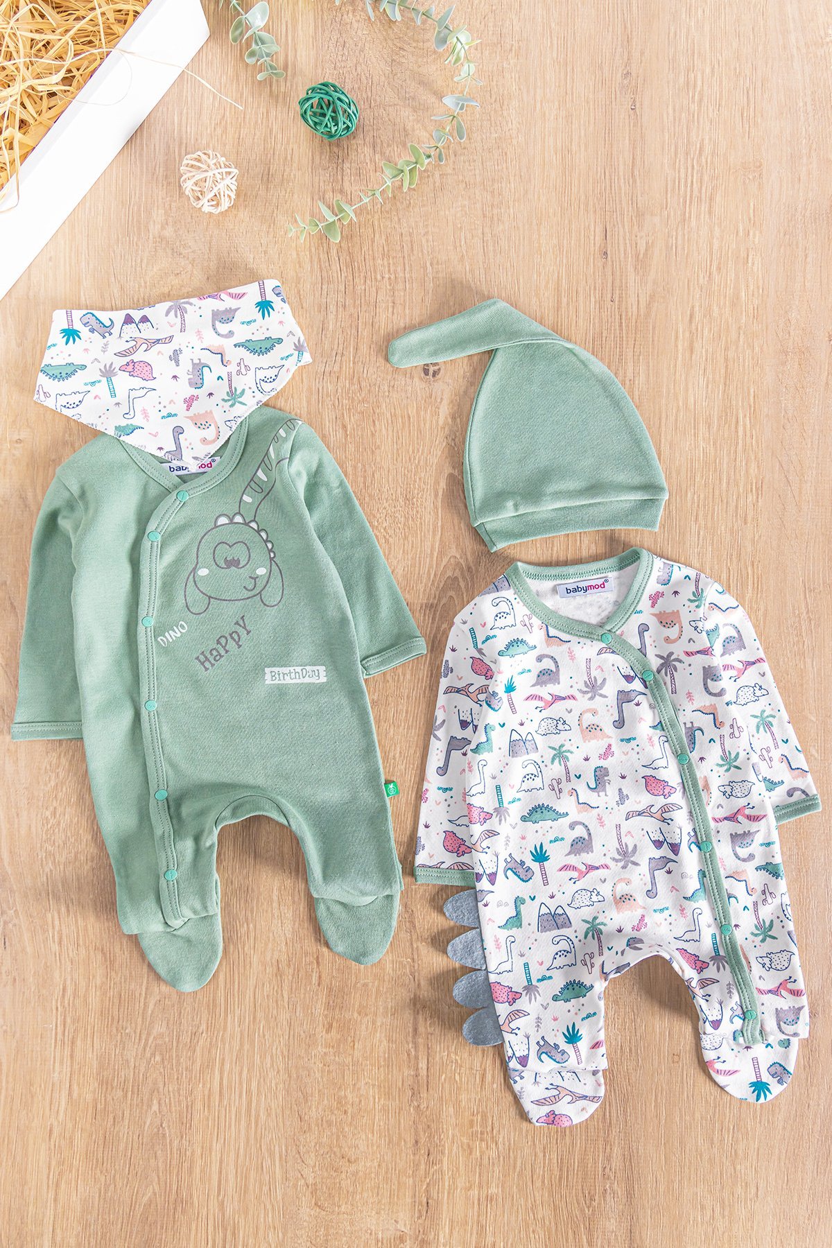 Dino Figürlü Uzun Kollu 2'li Erkek Bebek Tulum