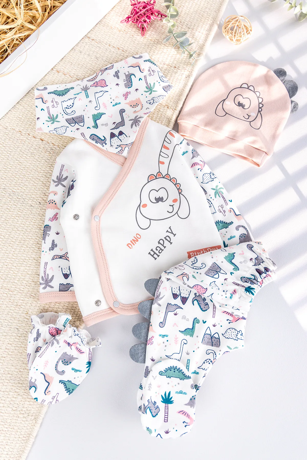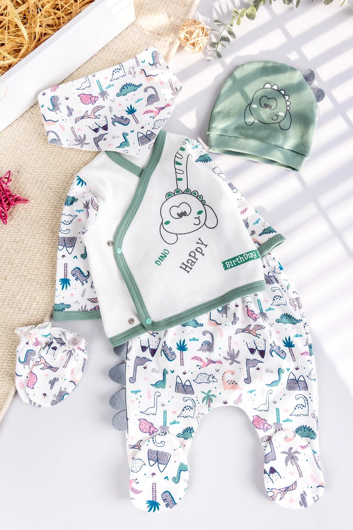 Dino Temalı 5 Parça Bebek Hastane Çıkışı Bebek Takımı