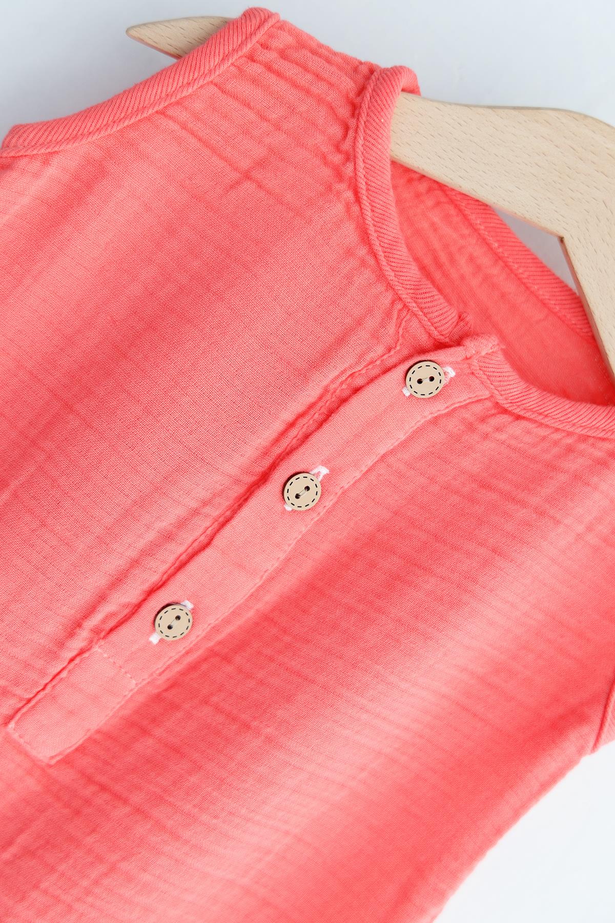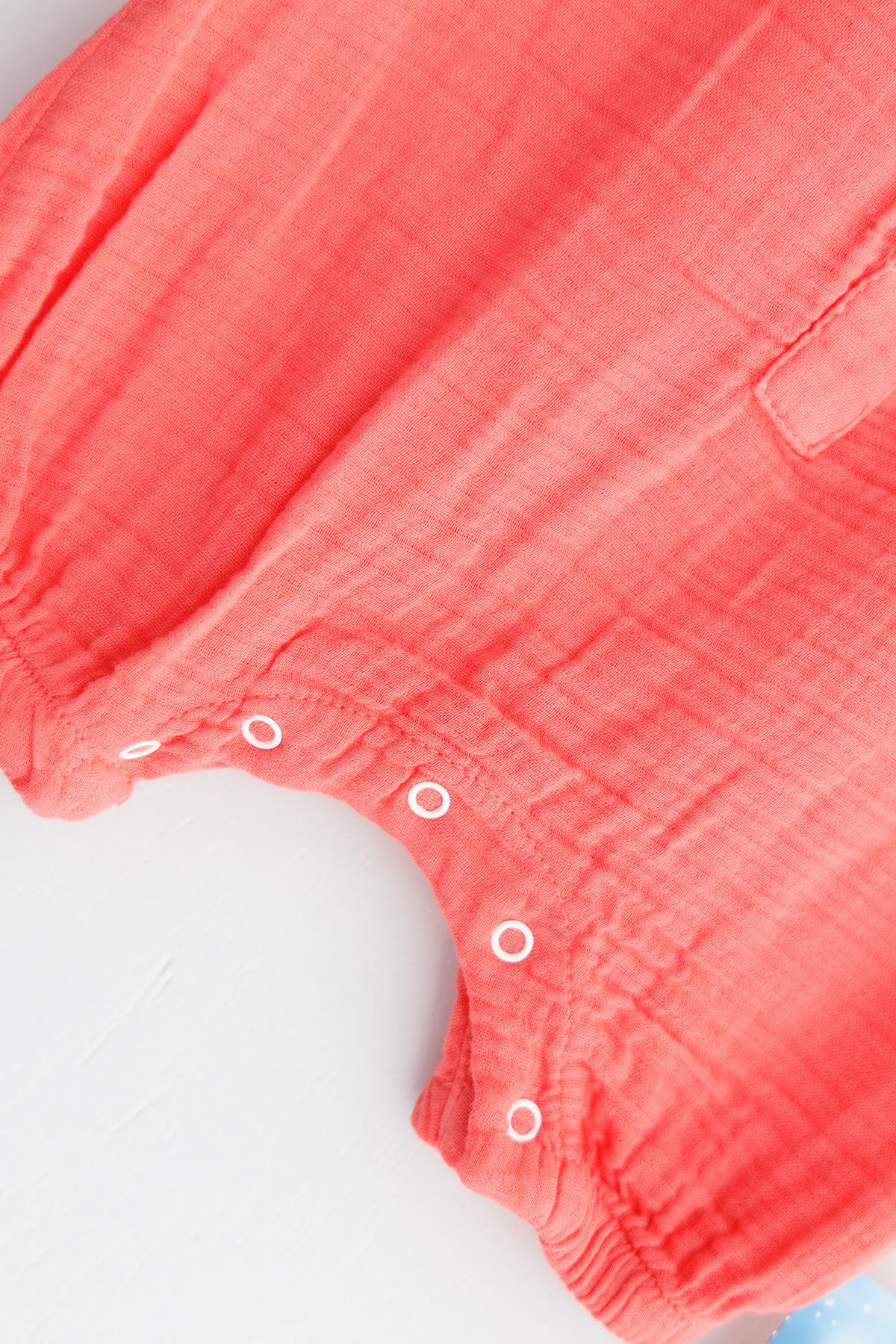 Düğmeli Organik Müslin Erkek Bebek Tulum