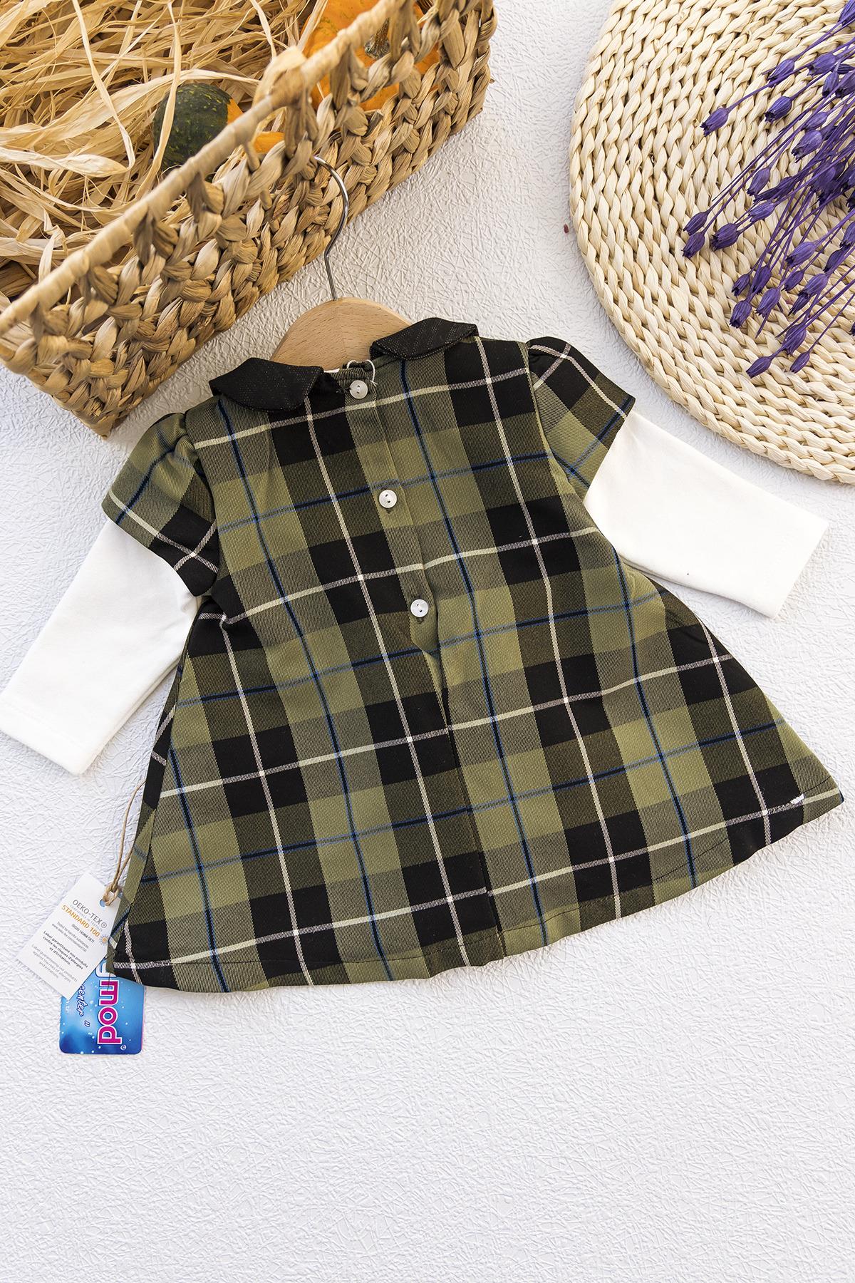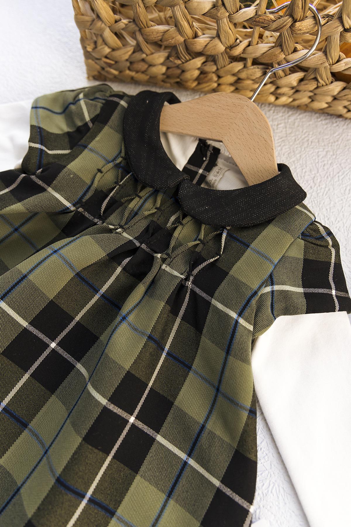 Ekose Desenli Kız Bebek Elbise