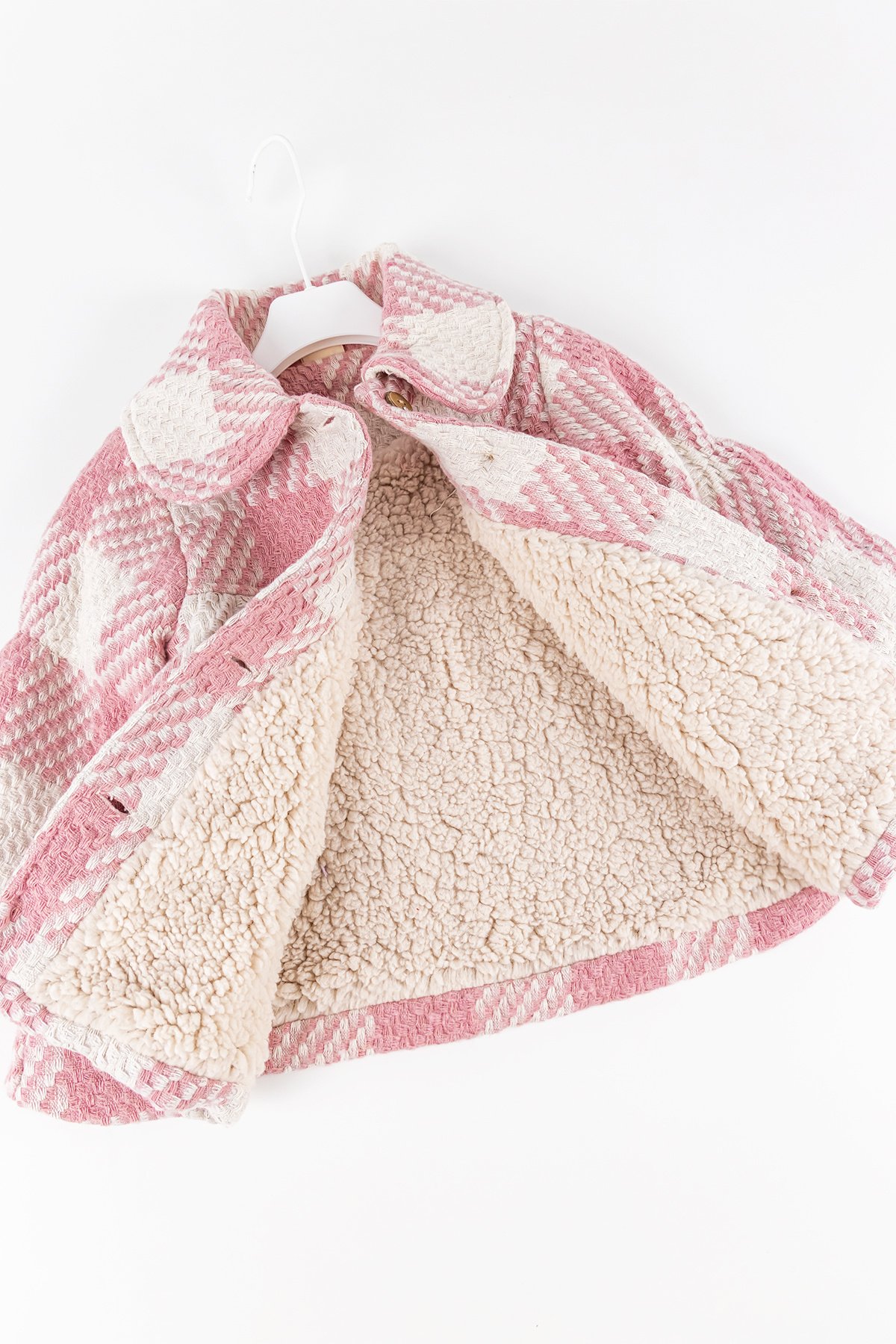 Ekose Desenli Pembe Peluş Astarlı Kız Çocuk Mont