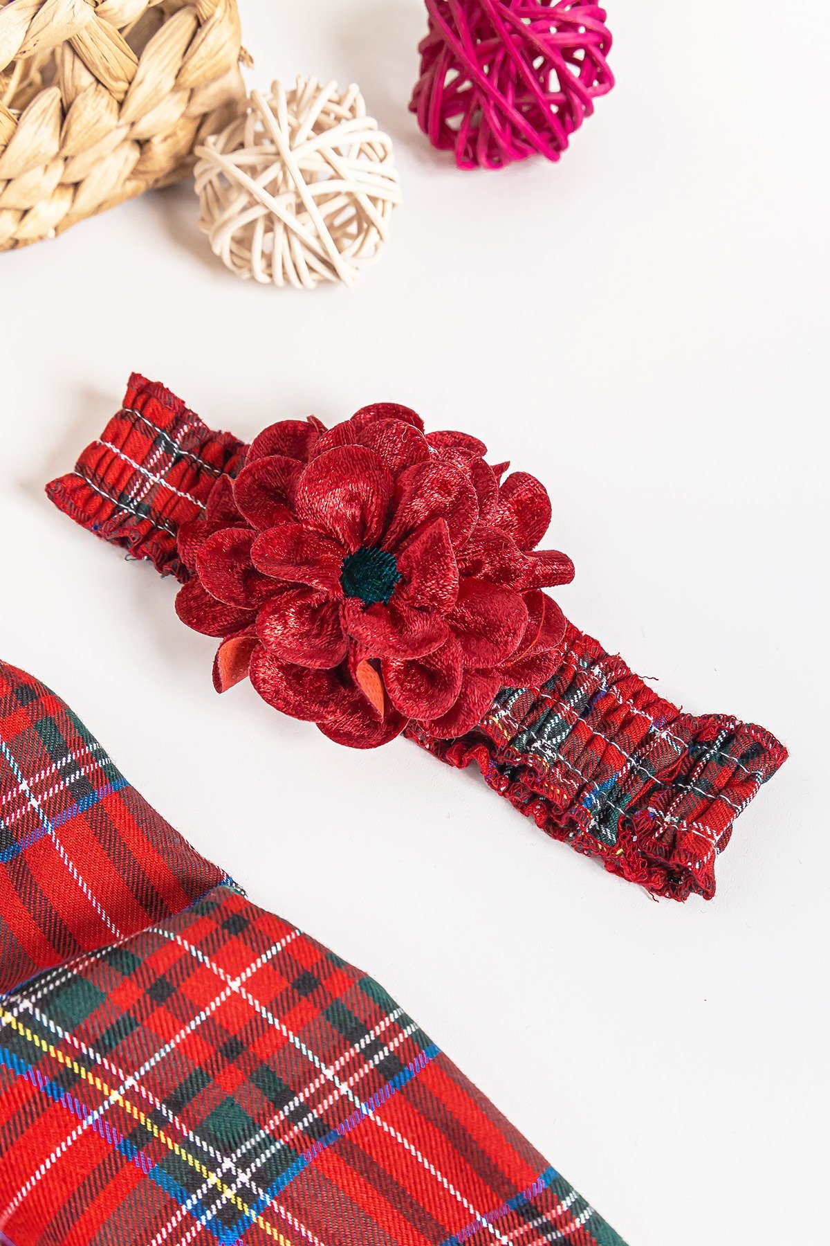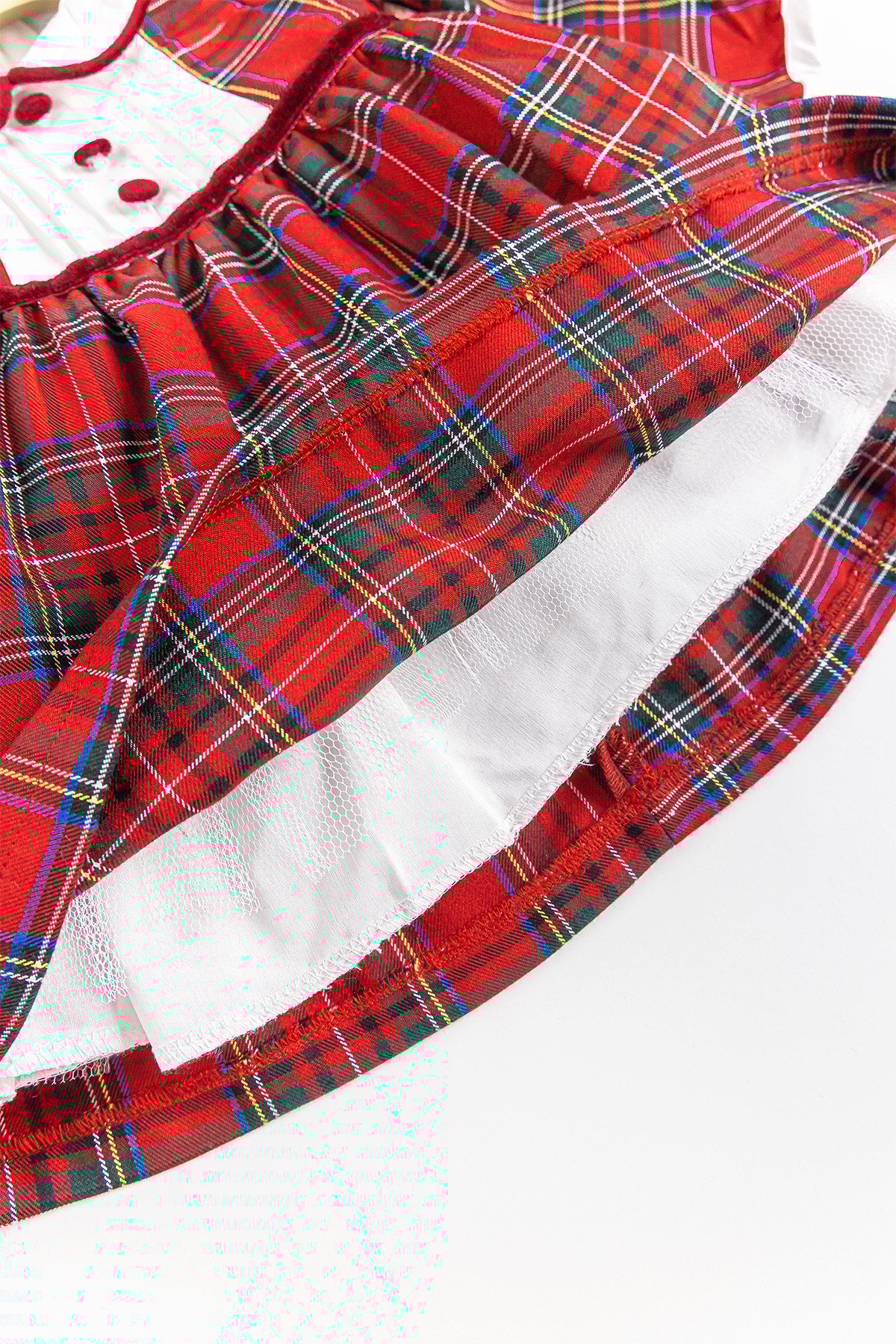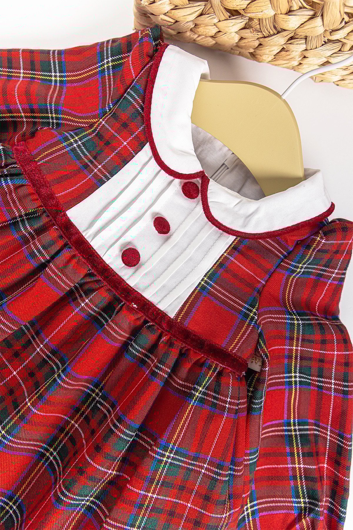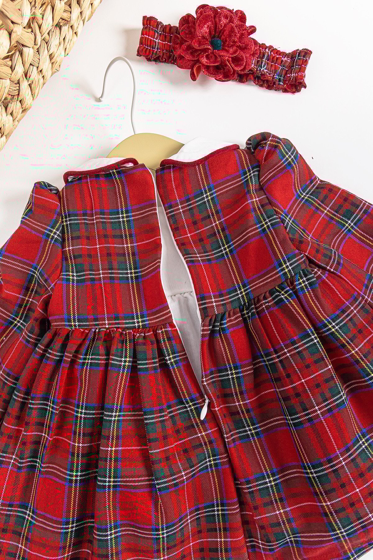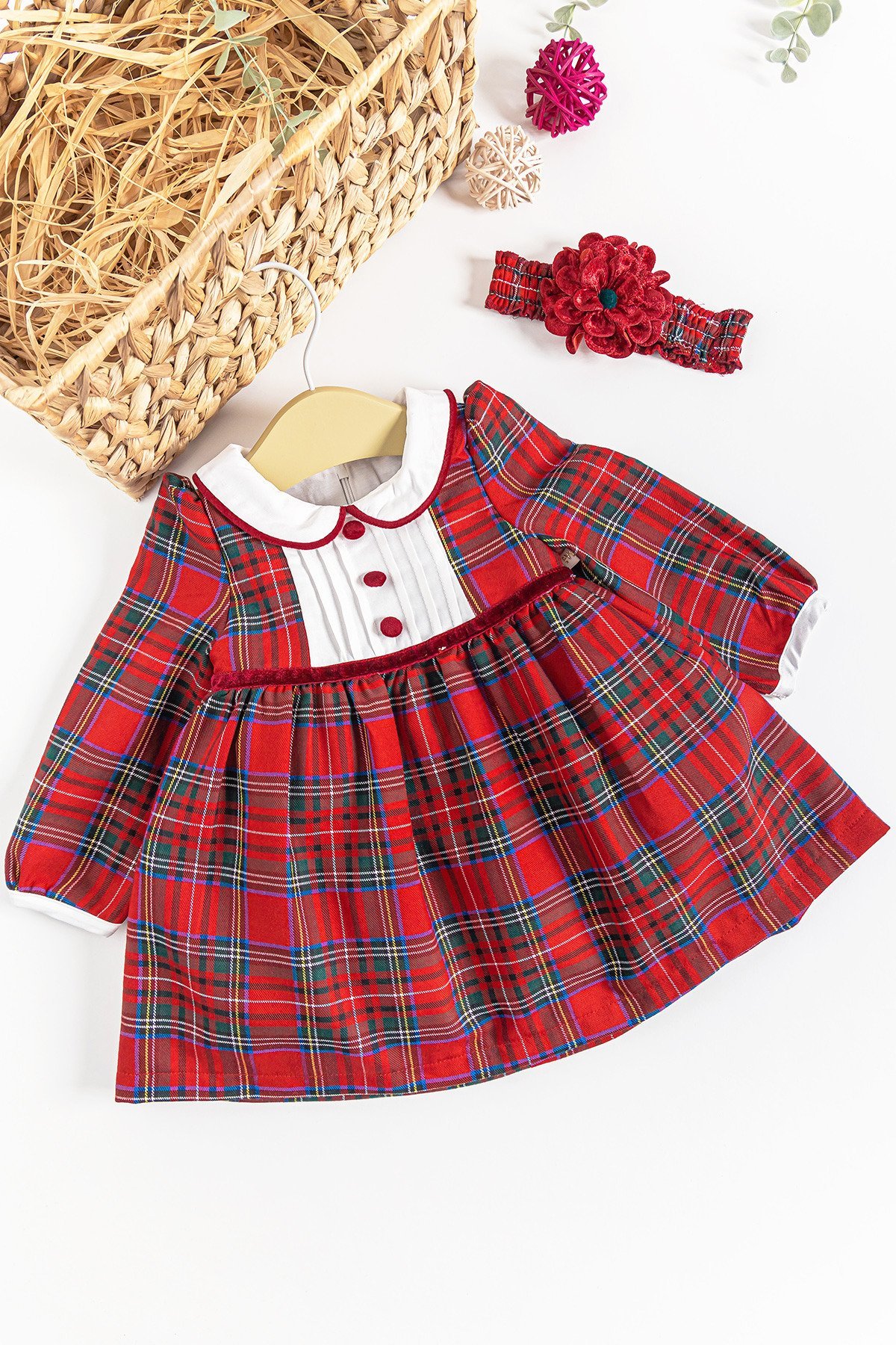 Ekoseli Bebe Yakalı Kız Bebek Elbise