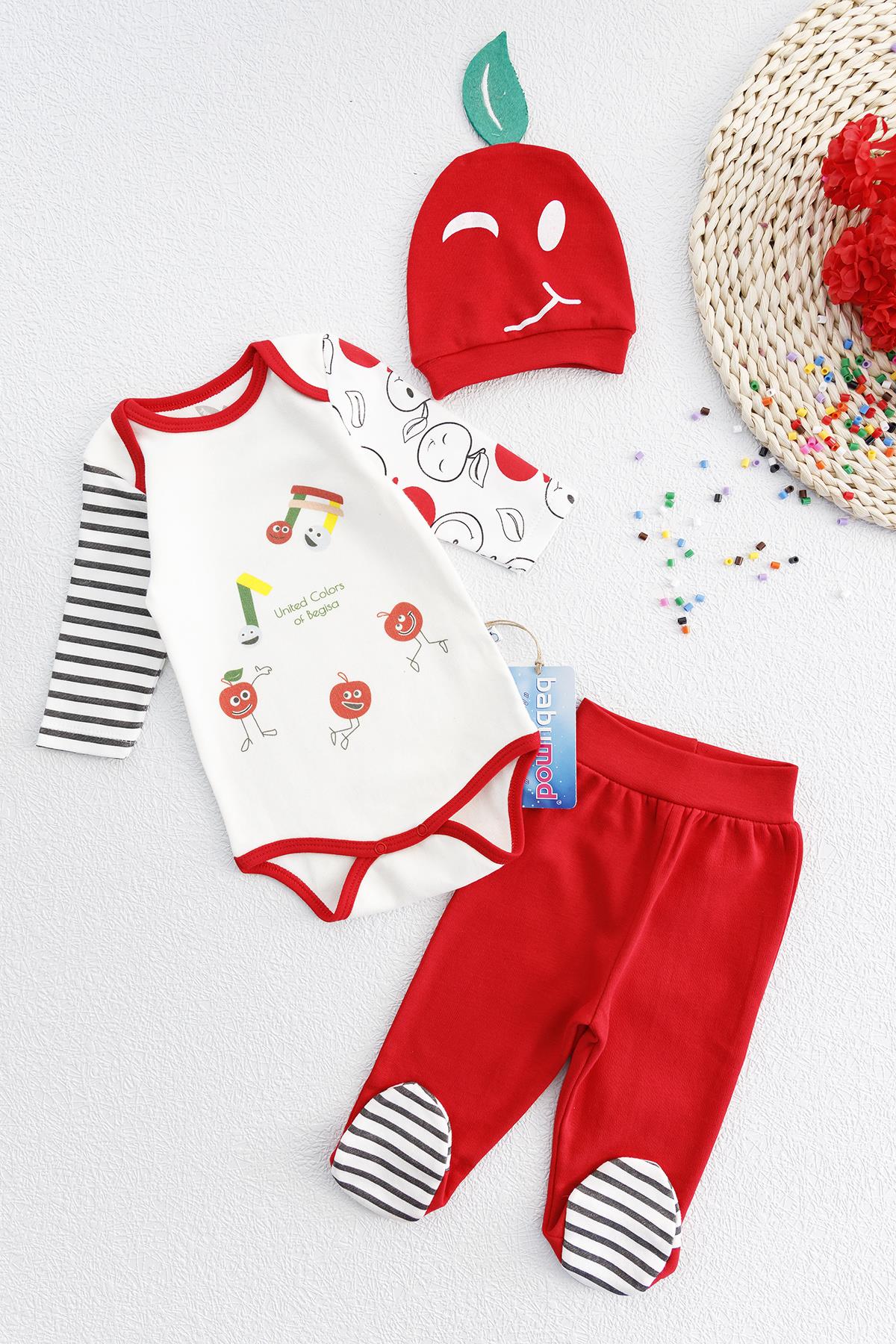 Elma Temalı Üçlü Bebek Takımı Zıbın Seti