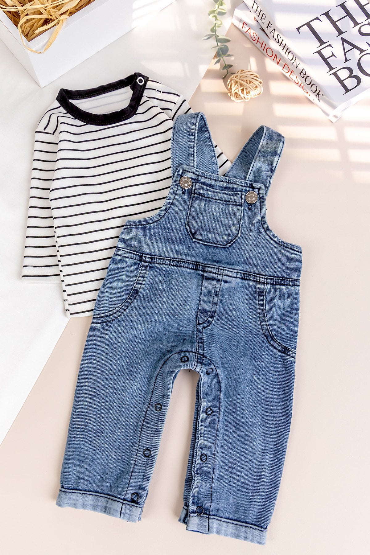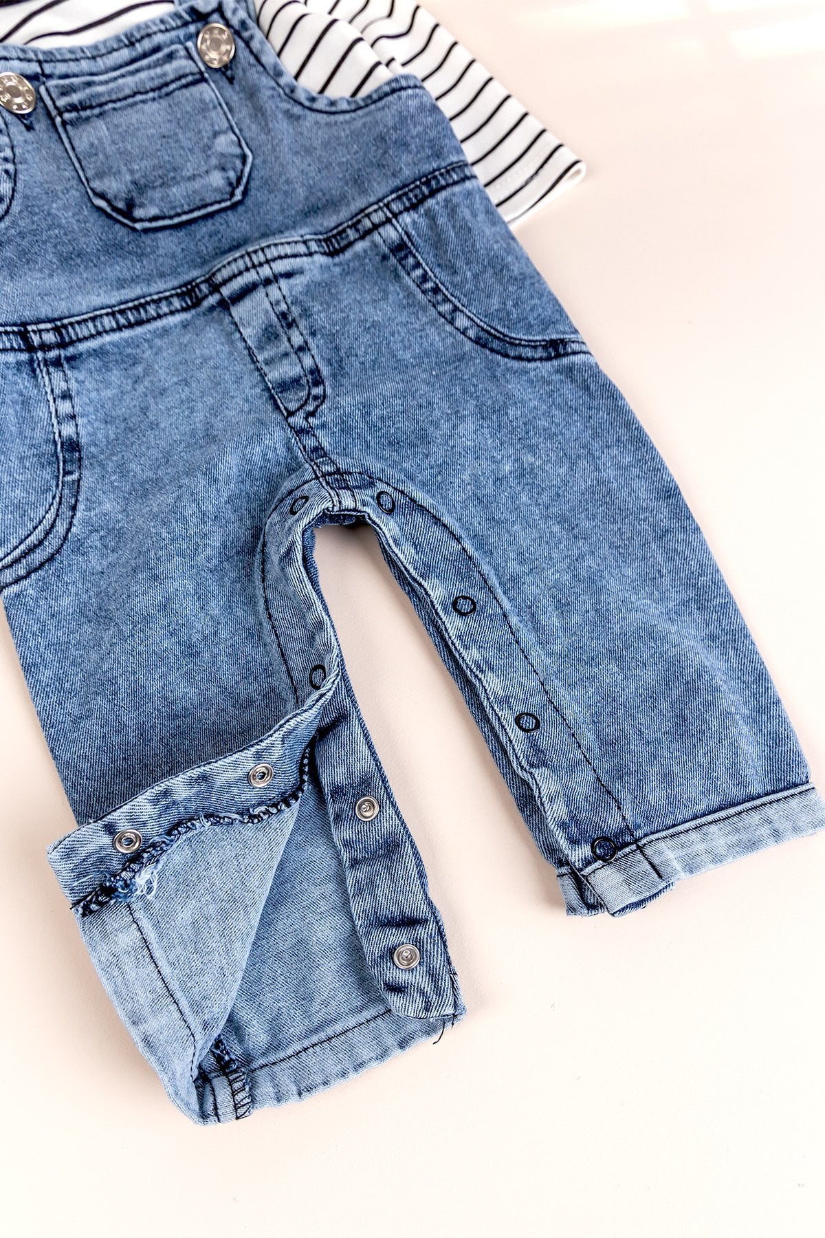 - Erkek bebek salopet yumuşak dokulu denim kumaştan üretilmiştir