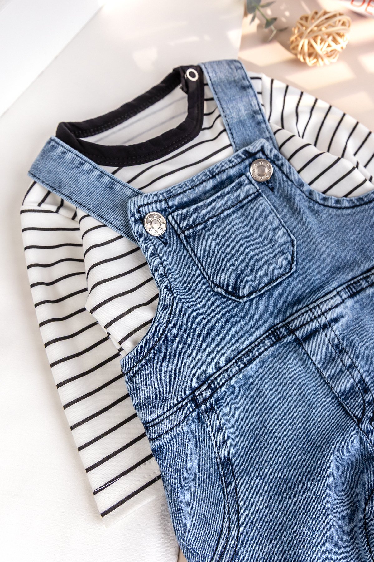 Erkek Bebek 2'li Denim Şık Kot Salopet Tulum Set