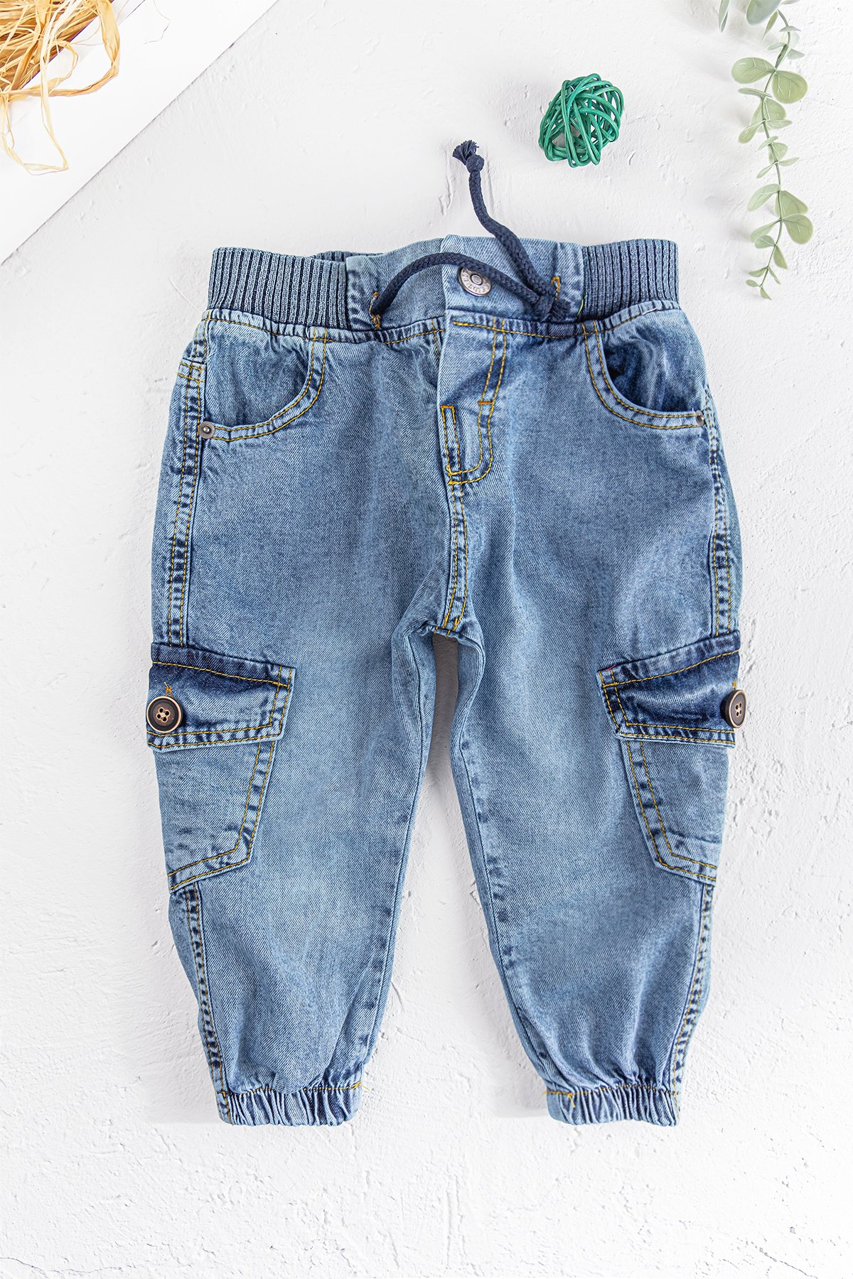 Erkek Bebek/Çocuk Denim Kumaş Kot Kargo Pantolon