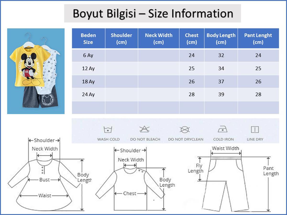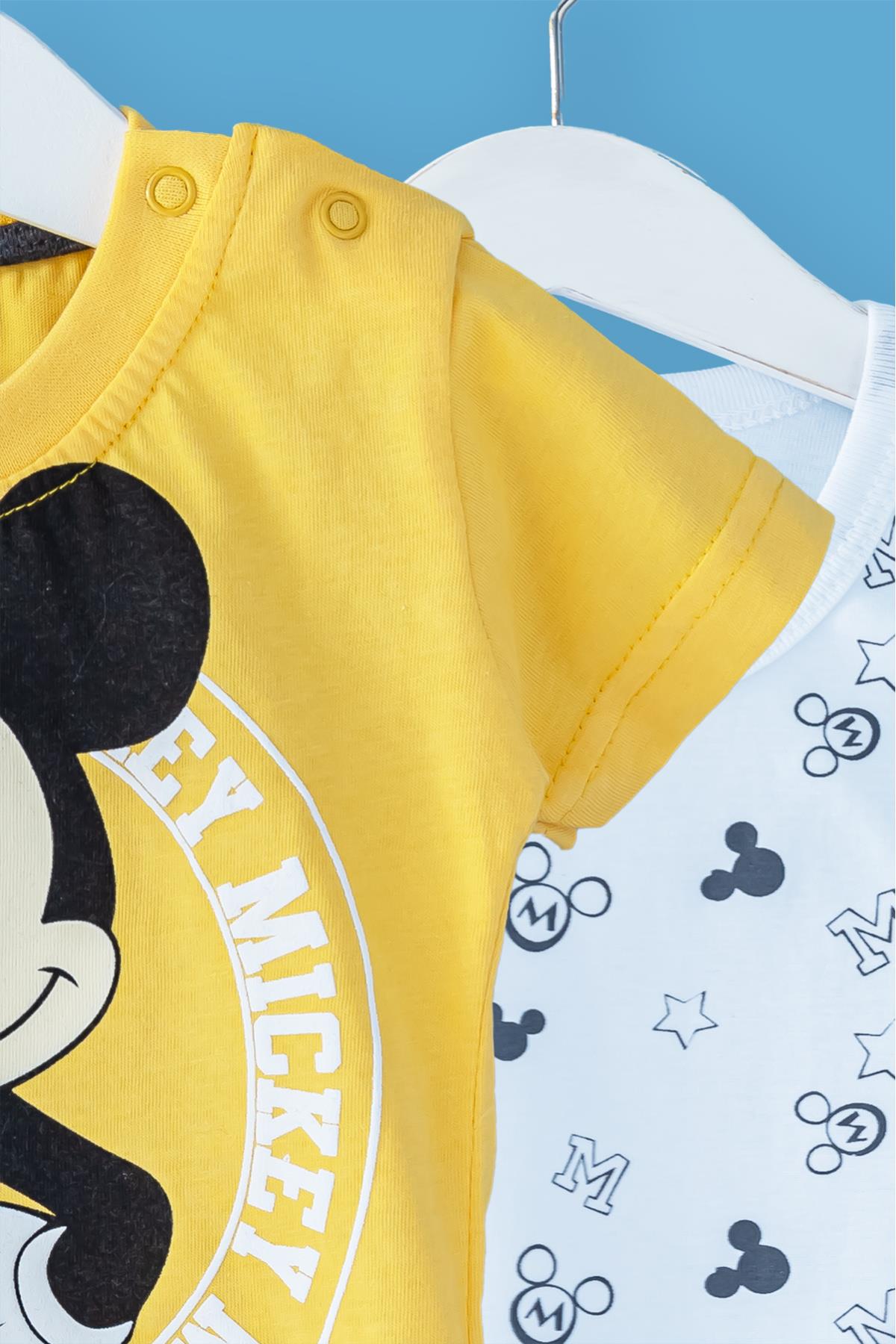 Erkek Bebek Takım Mickey Desenli Üçlü Bebek Takım
