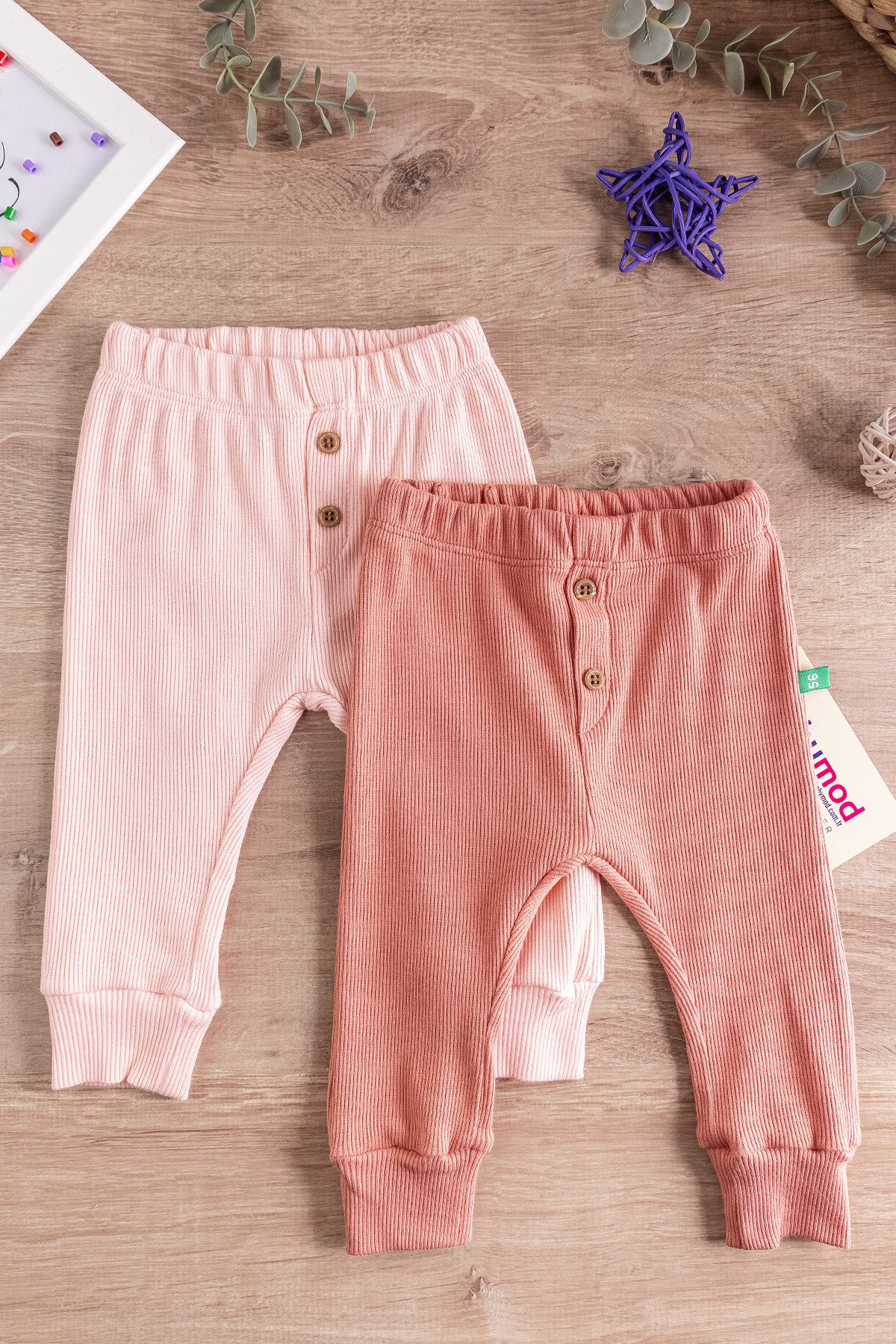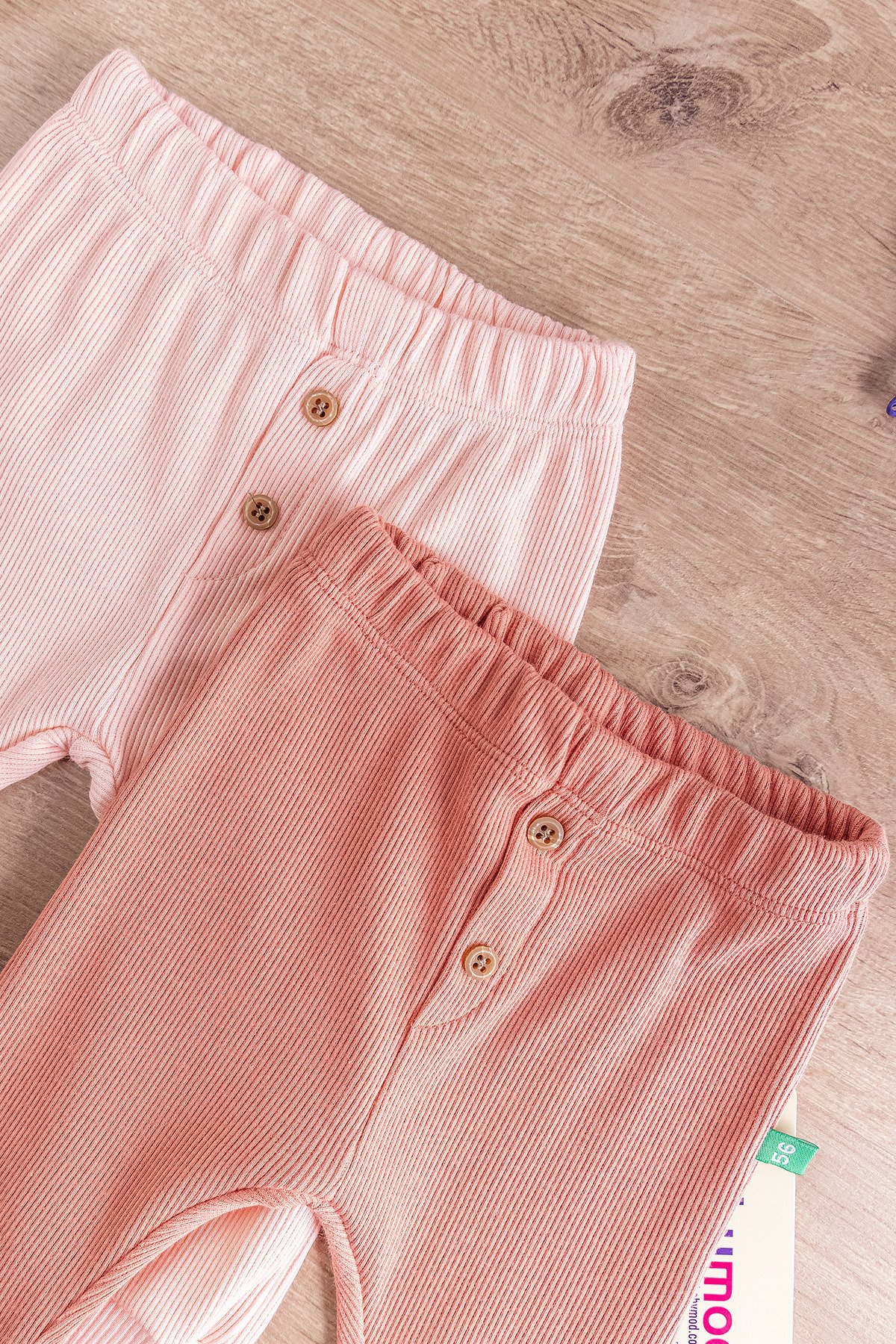 - The ankles of the baby pants have rib cuffs.