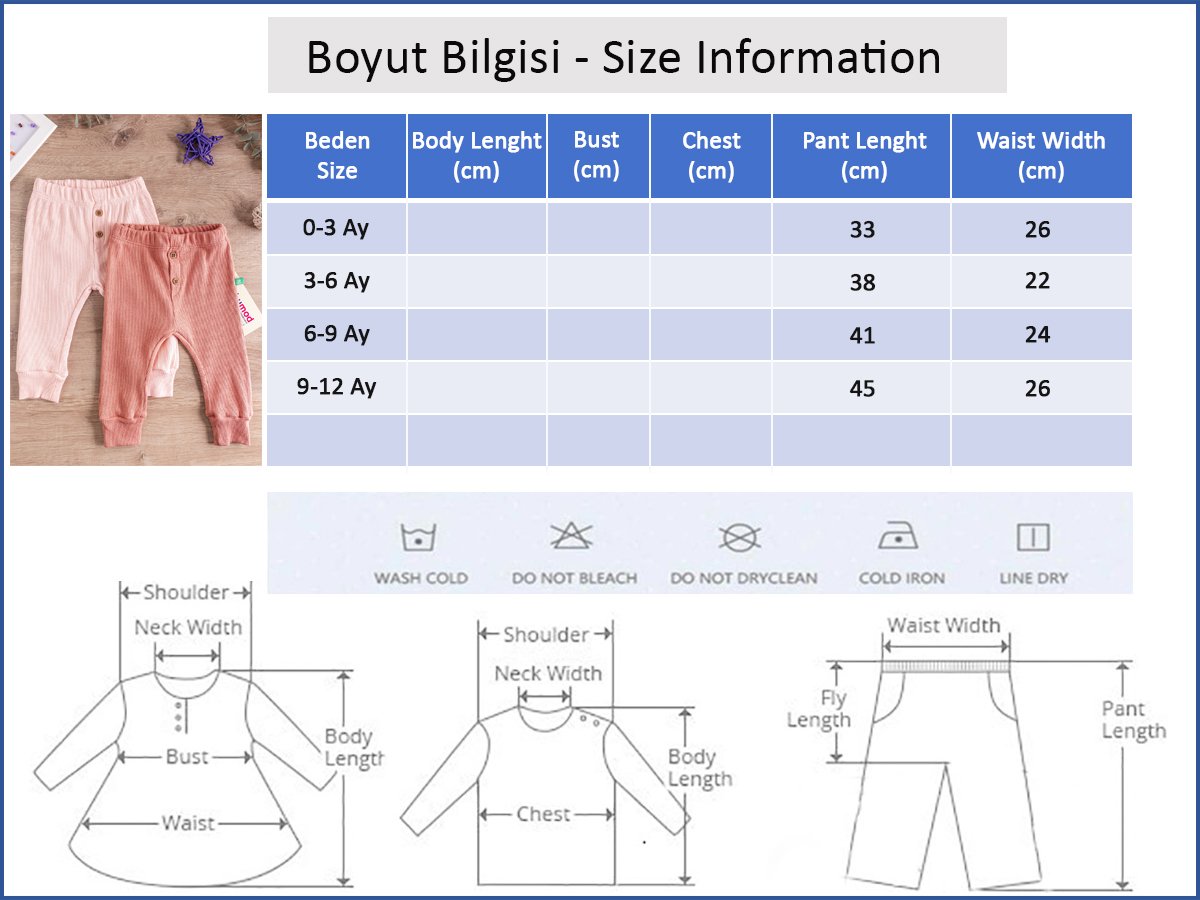 - Bebek pantolonun beli lastiklidir.