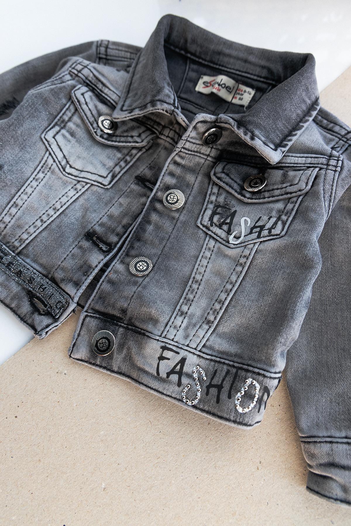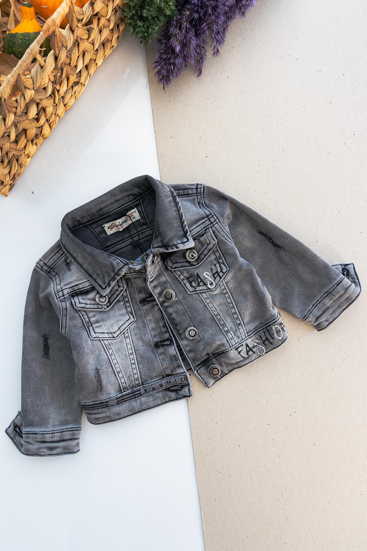Fashion Taş İşlemeli Eskitme Kız Bebek Kot Ceket