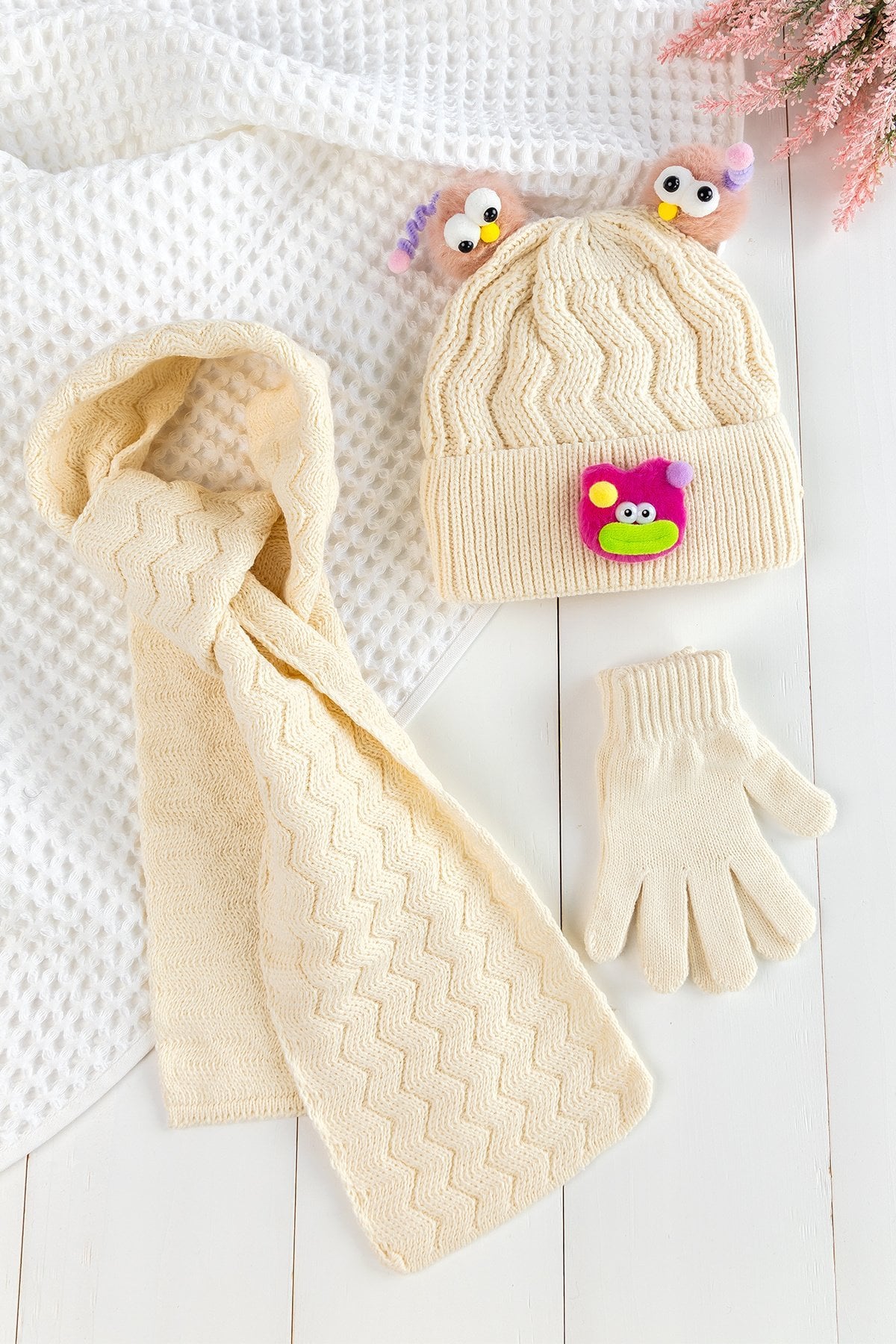 Figürlü 4-8yaş Kız ÇocukAtkı Bere Eldiven Takımı