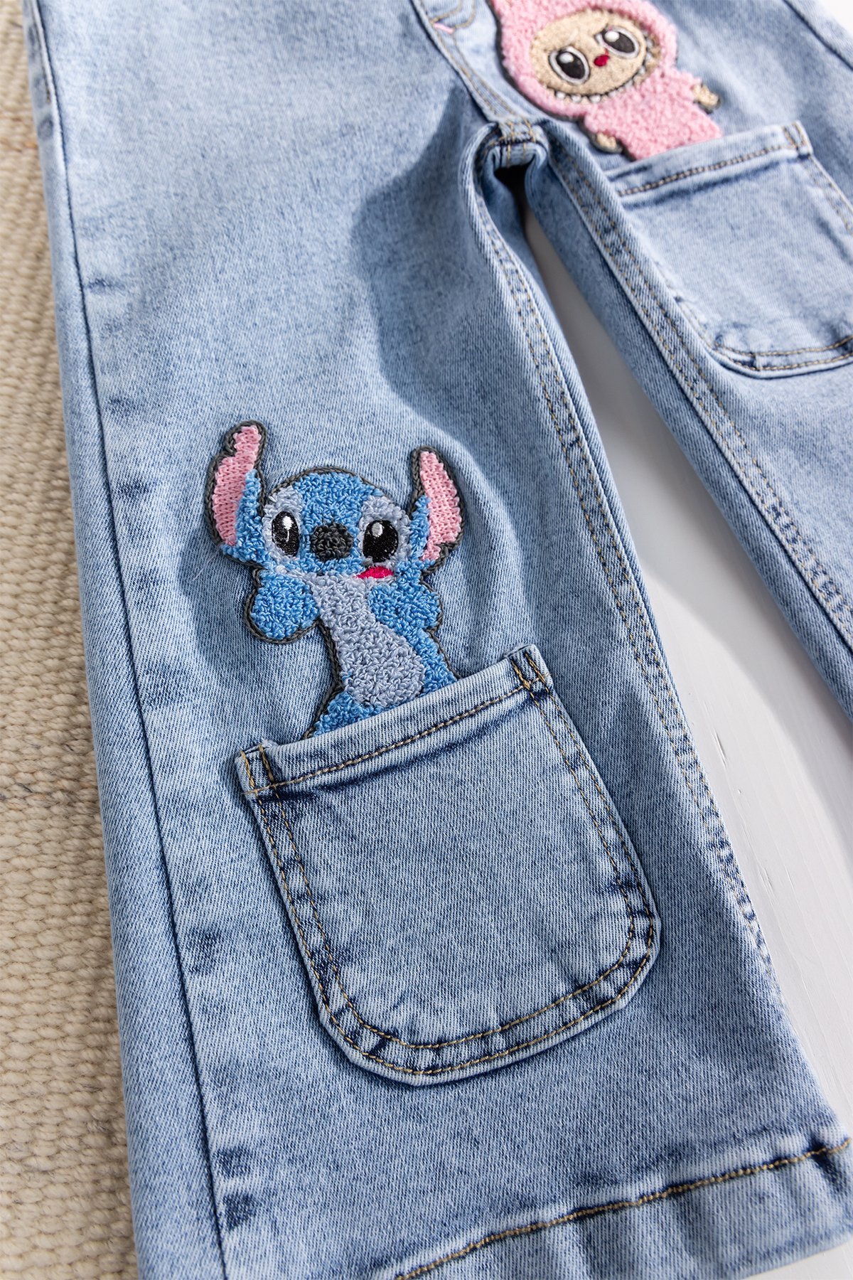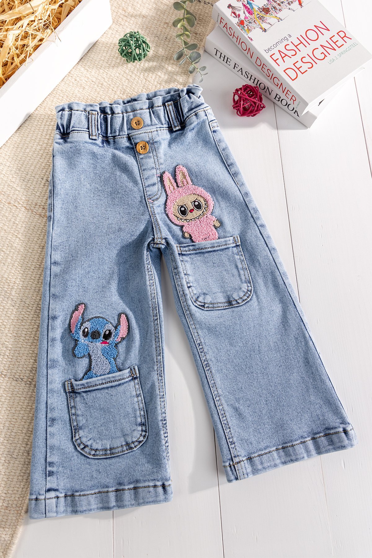 - Miniklerin enerjisine uyum sağlayan bu şık kot pantolon, eğlenceli figürlü desenleri ile tarzı renklendiriyor.