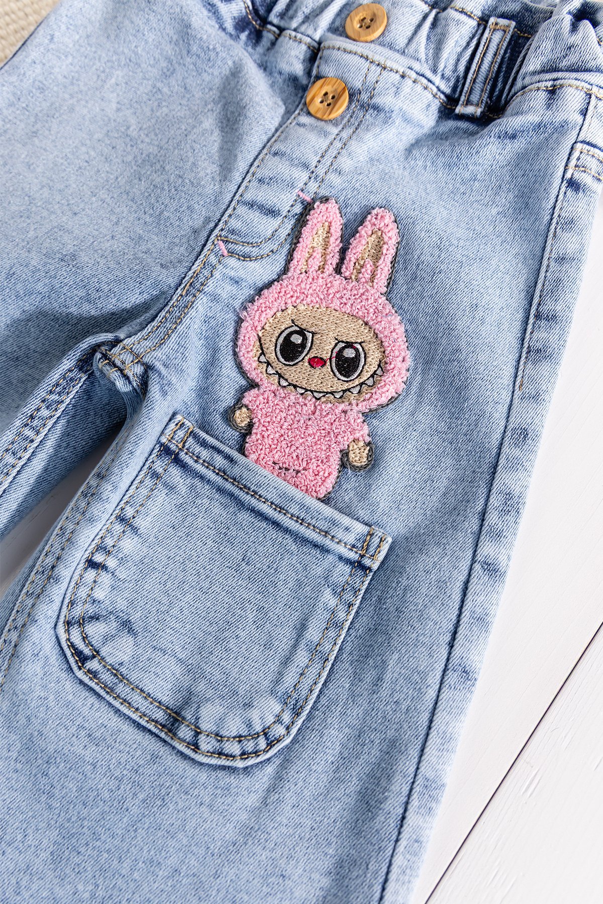 - Kız çocuk pantolon esnek yumuşak dokulu denim kumaştan üretilmiştir