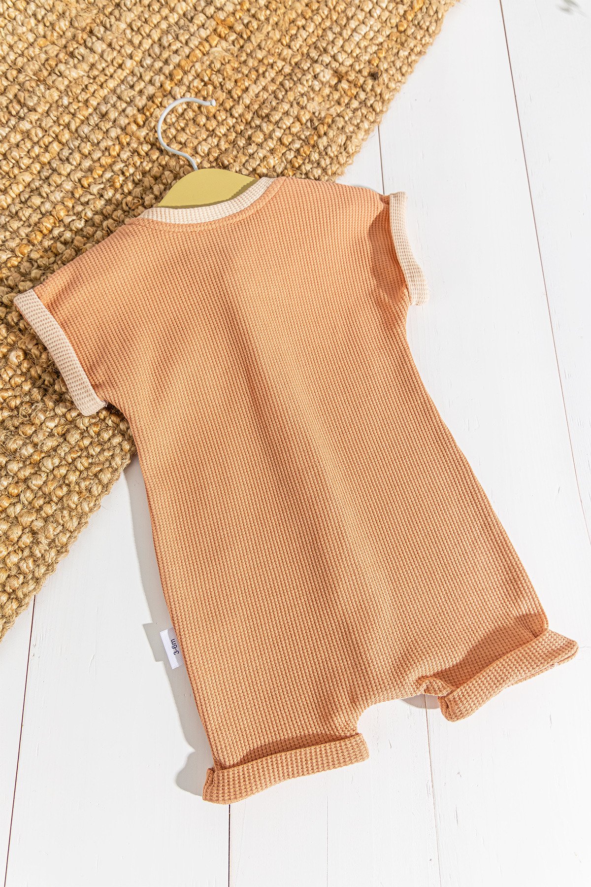 - Bebek tulumun kol kenarları katlama detaylıdır.