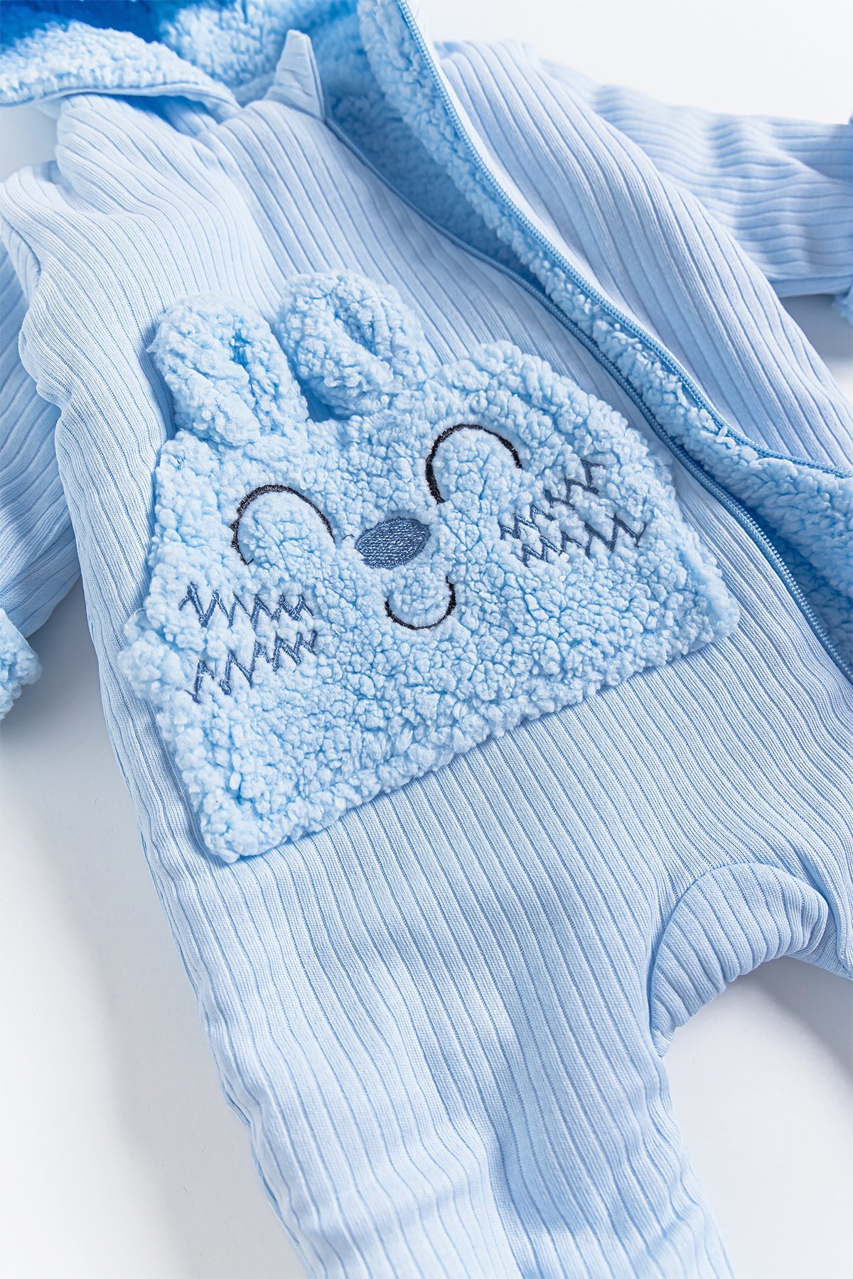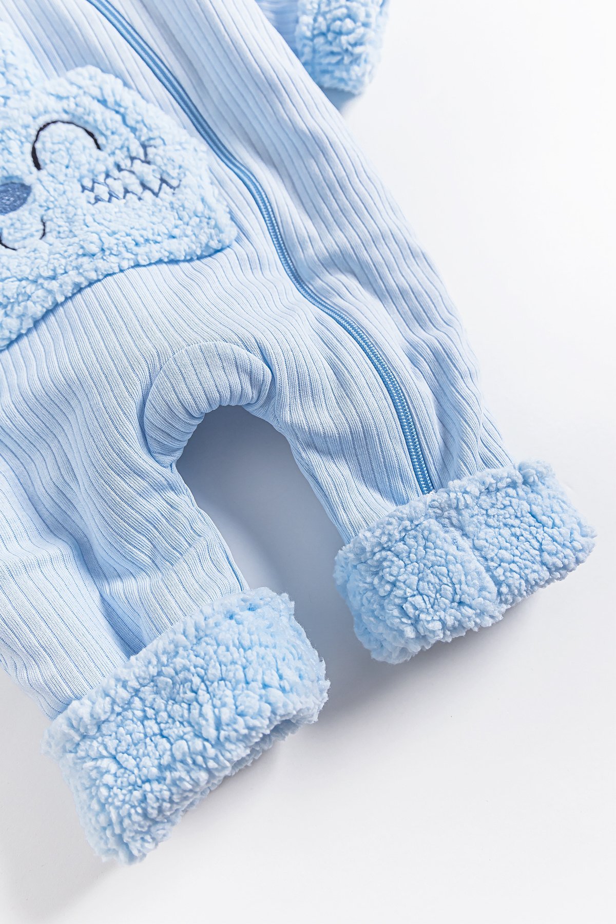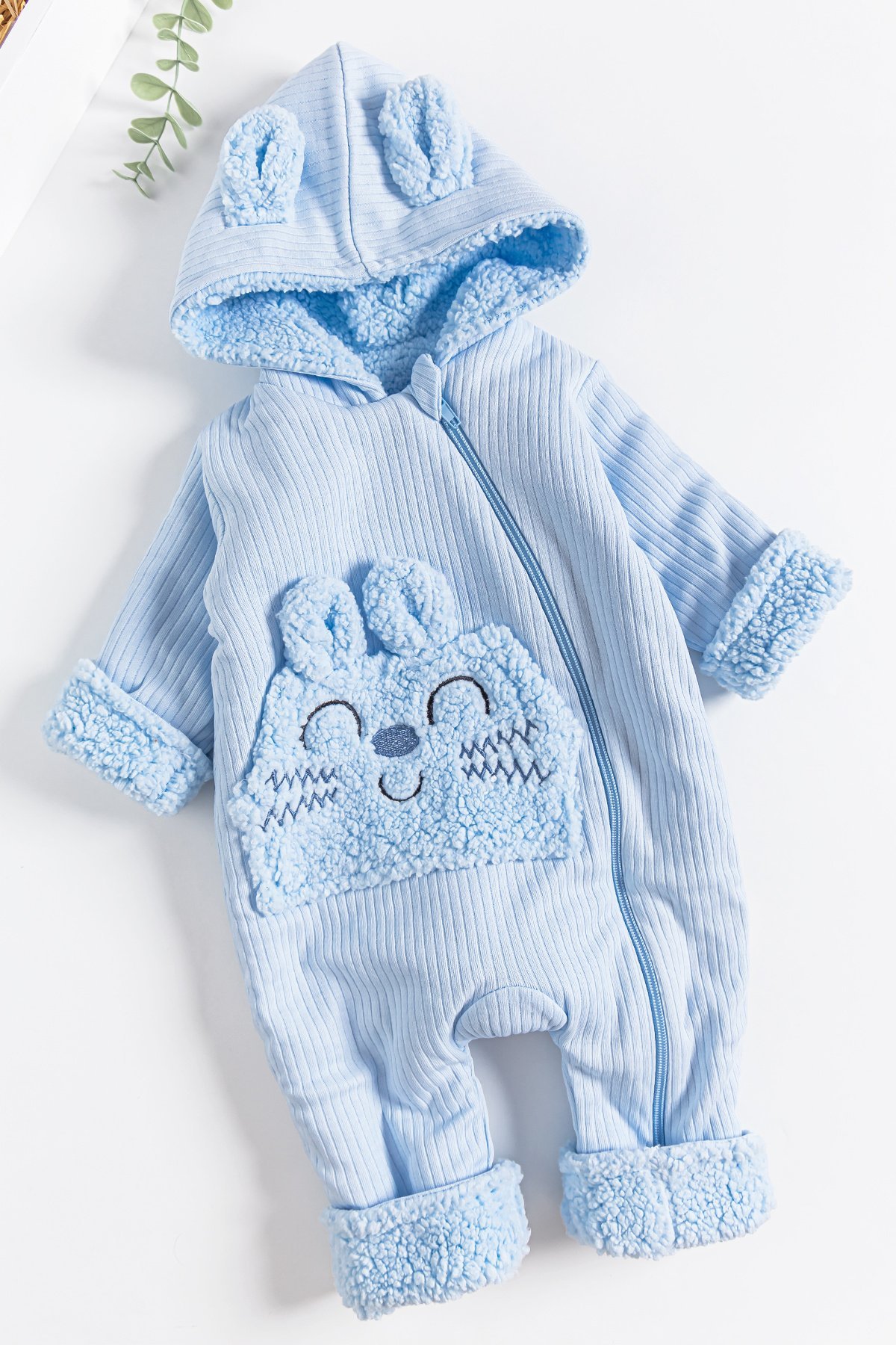 Figürlü Peluş Astarlı Kapüşonlu Bebek Tulum MAVİ - 3-6 AY