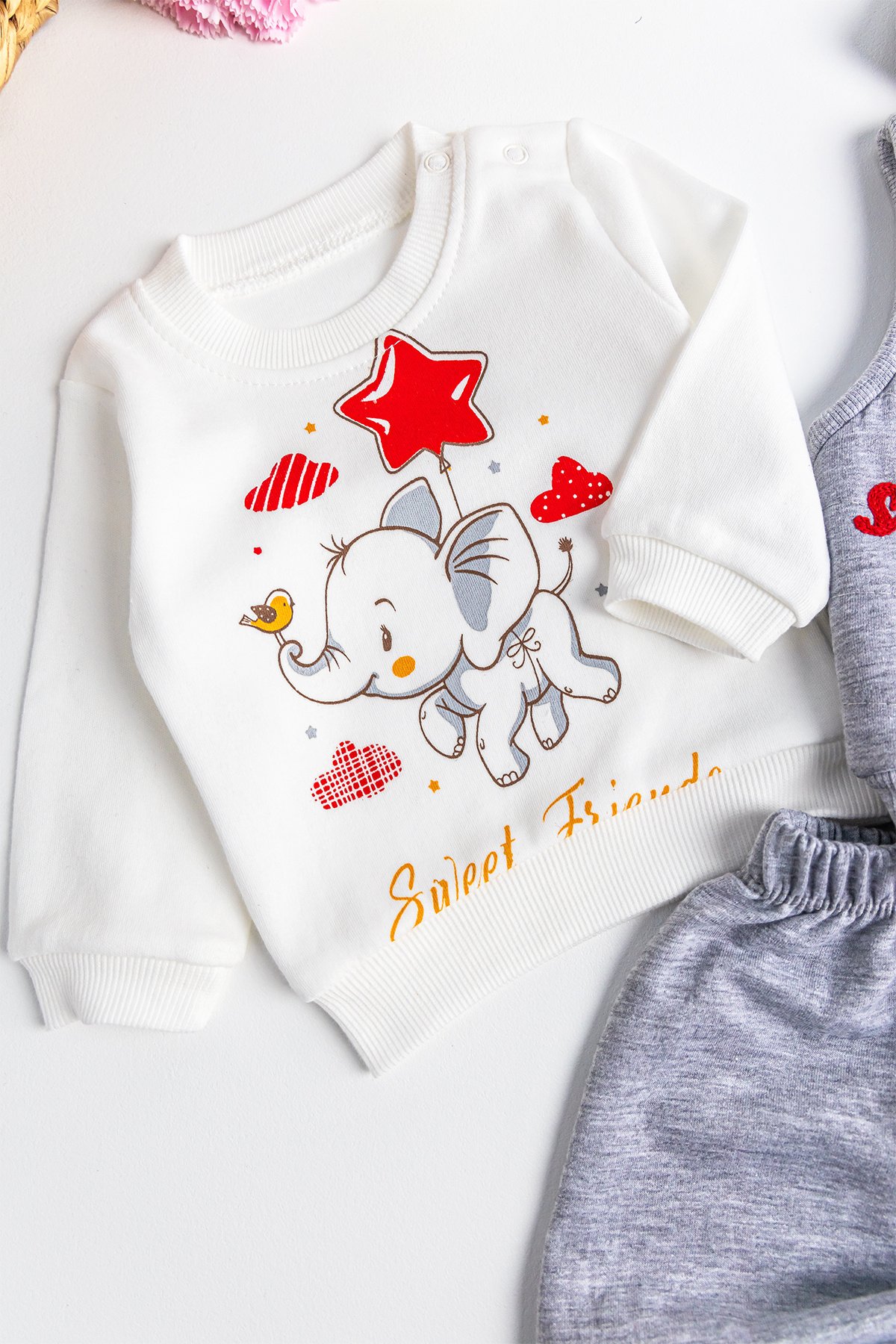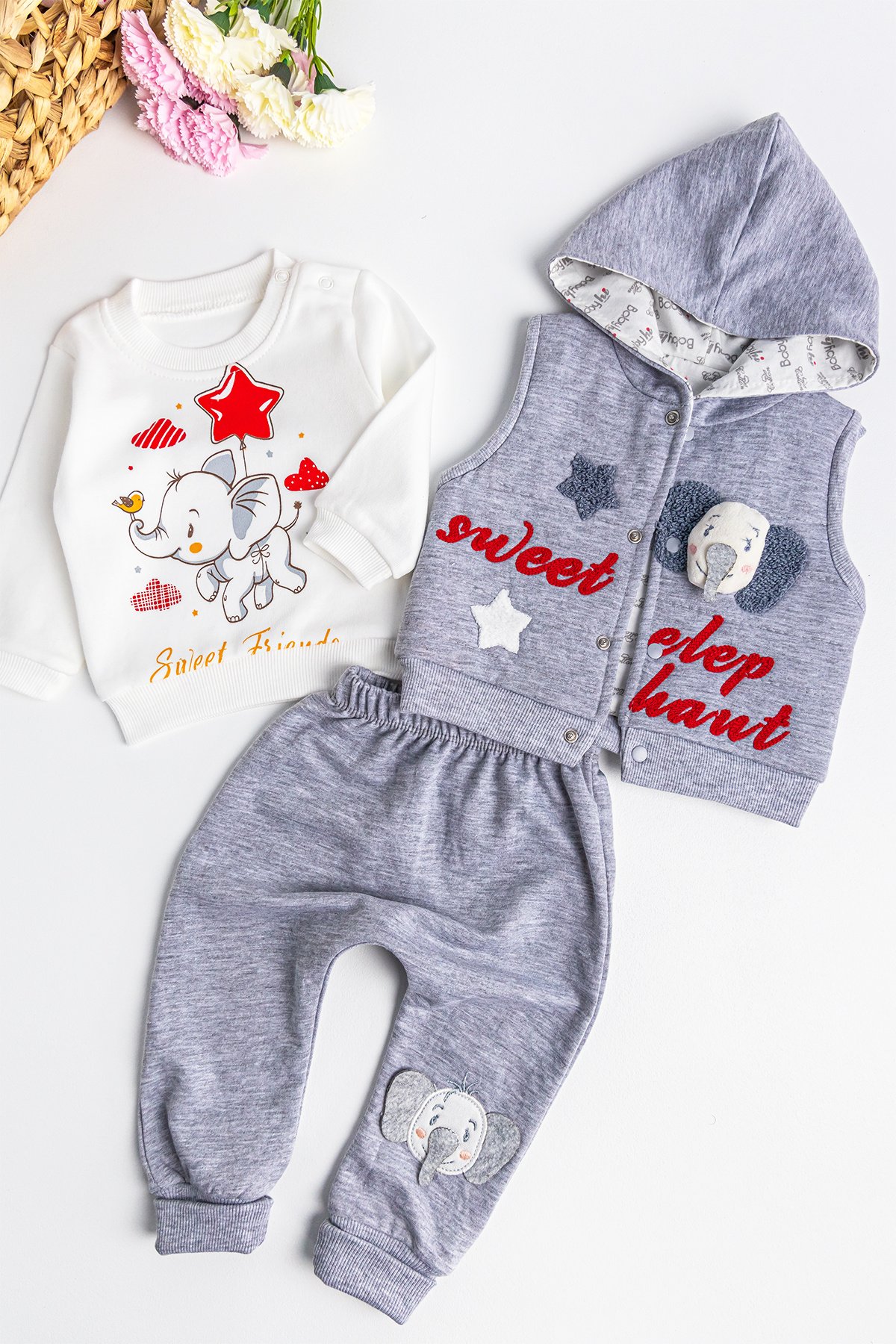 Fil Figürlü Üçlü Yelekli Kız Bebek Takım