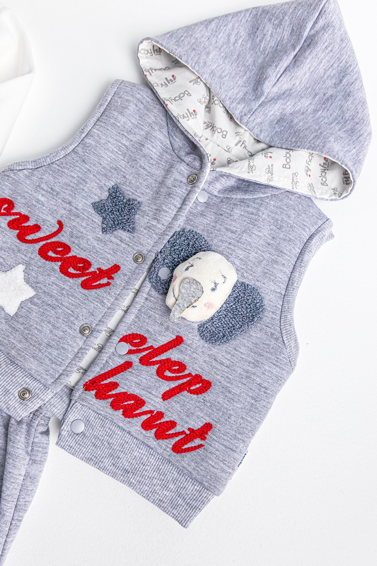 - Bebek yeleğin iç kısmı penye astarlıdır.