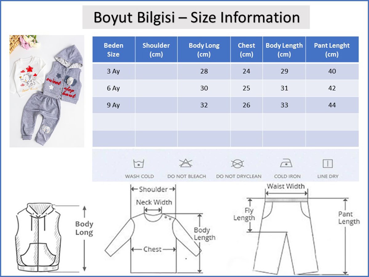 - Görselde kullanılan ürün 3 Ay bedendir.