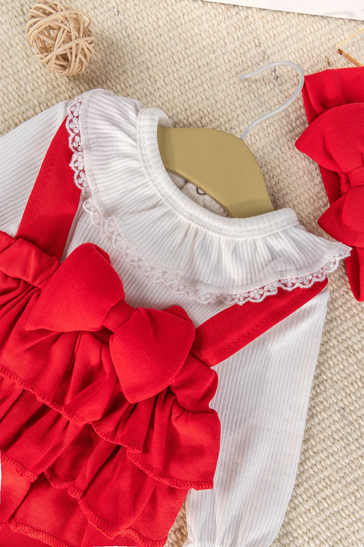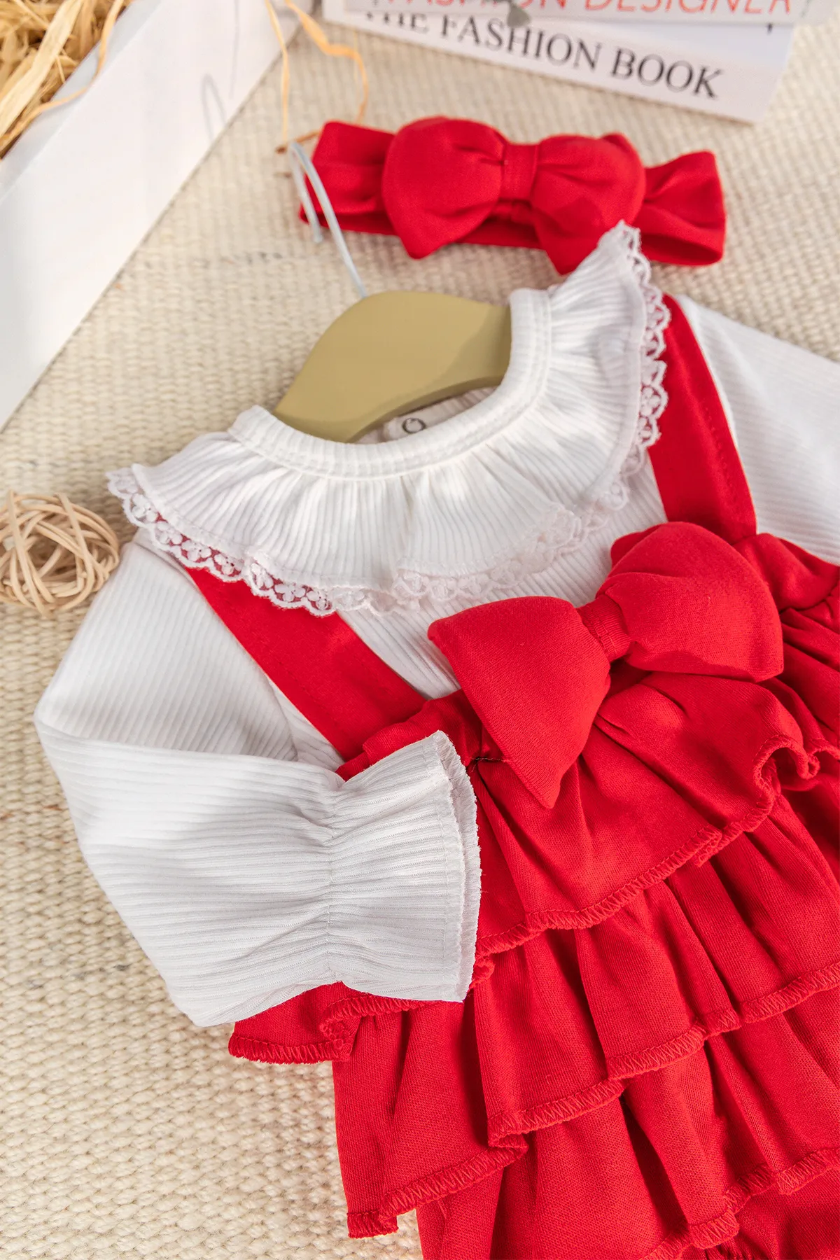 Fırfır Yakalı 100% Pamuk Kız Bebek Elbise Tulum