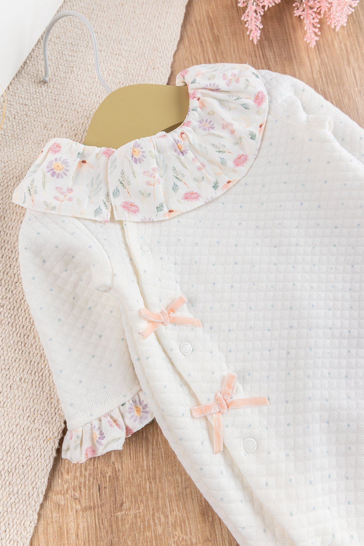Fırfır Yakalı Çiçekli Patikli Kız Bebek Tulum