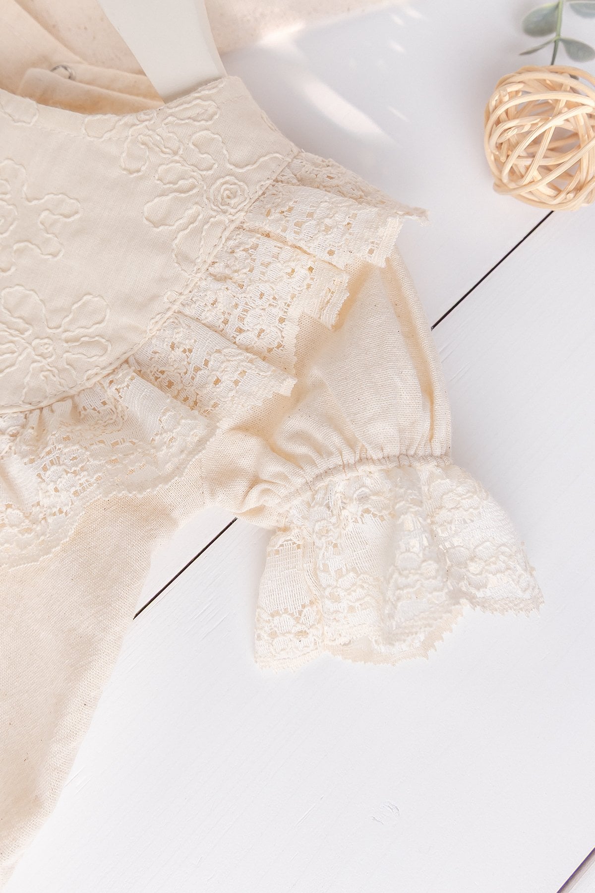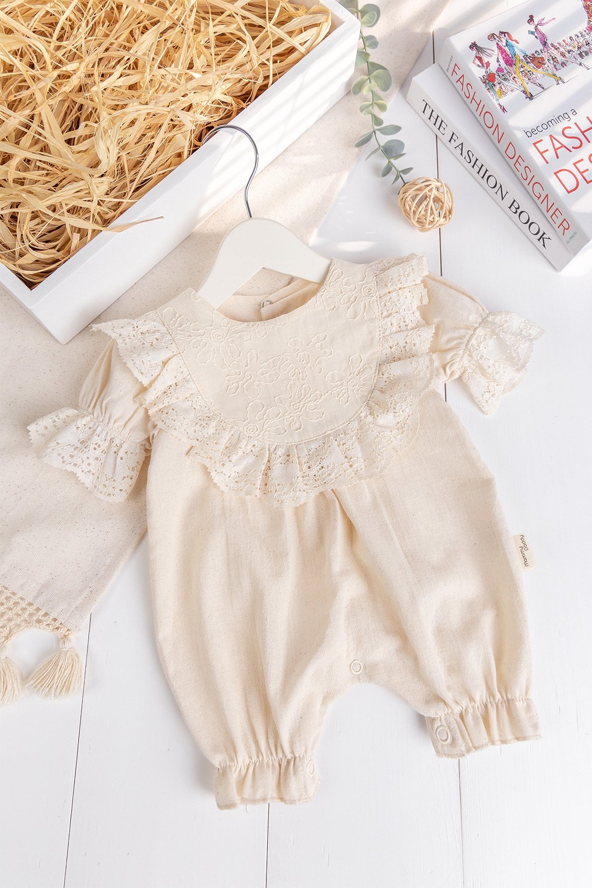 Fırfırlı 100% Pamuk Yazlık Kız Bebek Tulum Krem