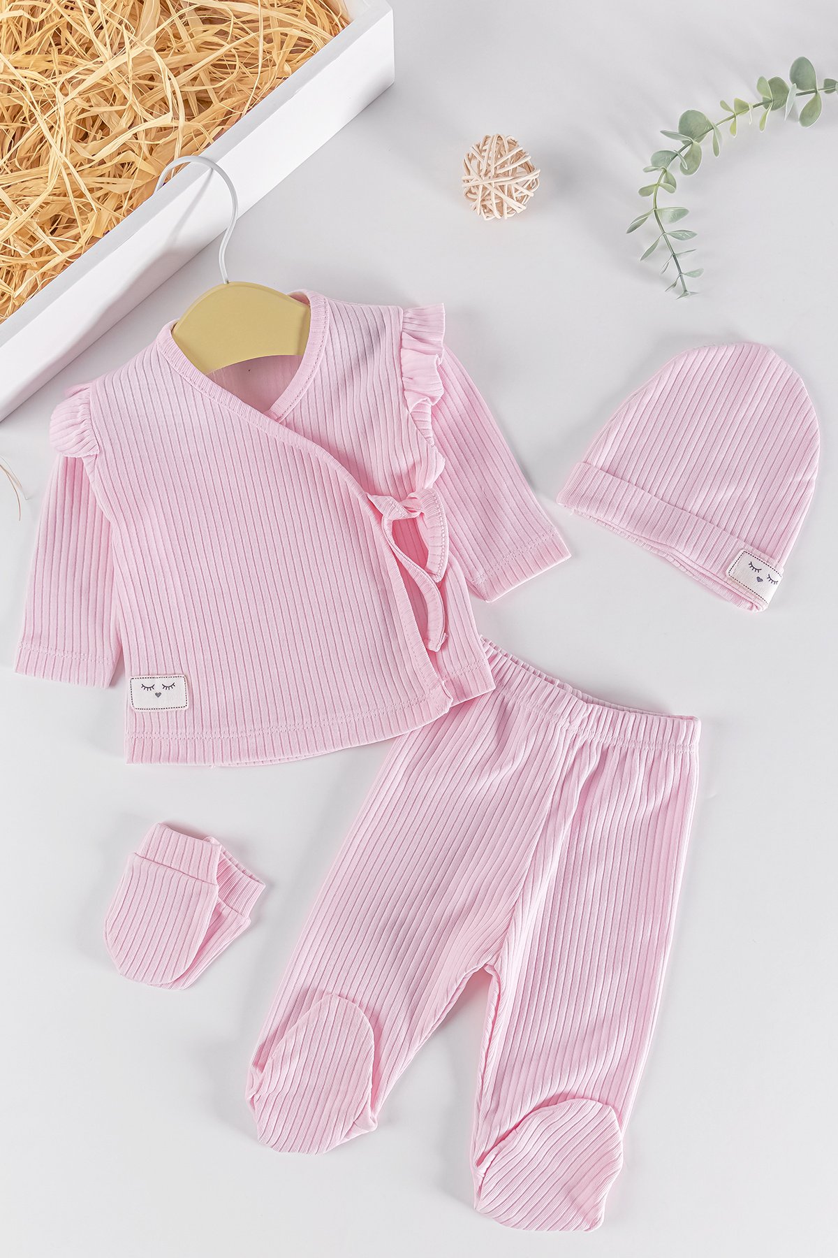 Fırfırlı 4 Parça Kız Bebek Hastane Çıkışı Bebek Takımı