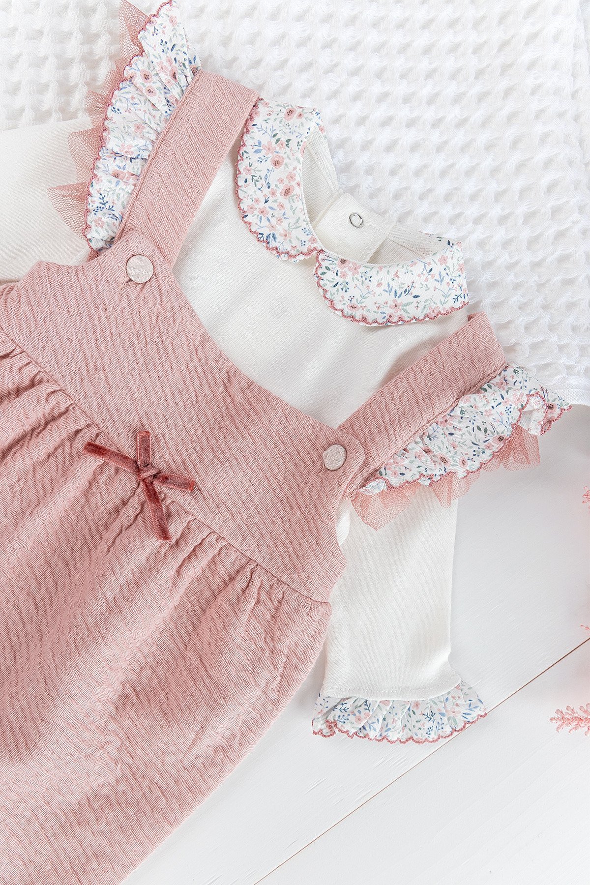 Babymod Frilly Floral Patterned Baby Girl Jumpsuit and Salopet Set with Booties