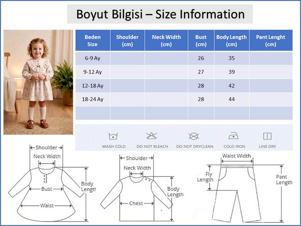 - Bebek elbise günlük kullanıma dogum günü,bayram gibi özel günler için kullanıma uygundur