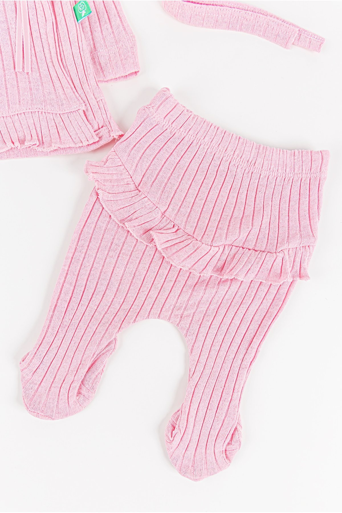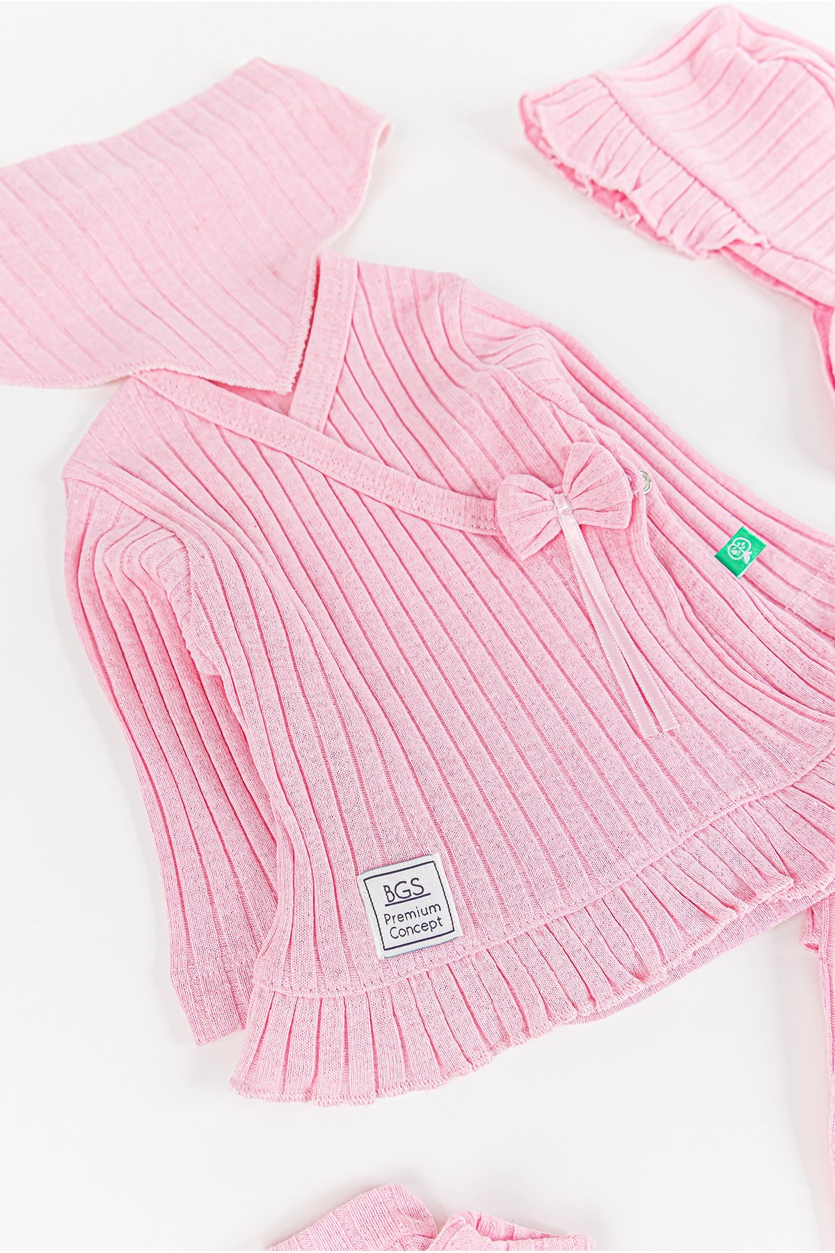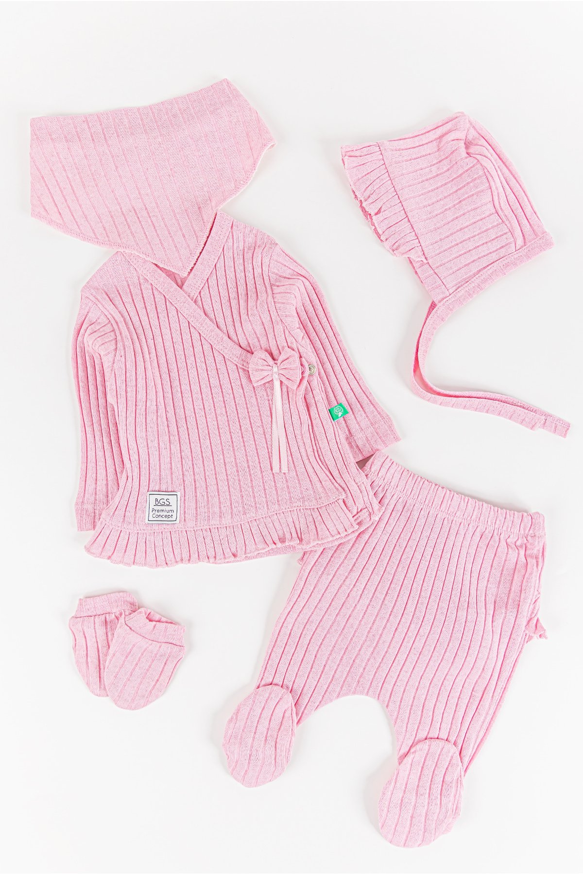 Fırfırlı Fiyonklu 5 Parça Kız Bebek Hastane Çıkışı Bebek Takımı PEMBE - Yeni Doğan