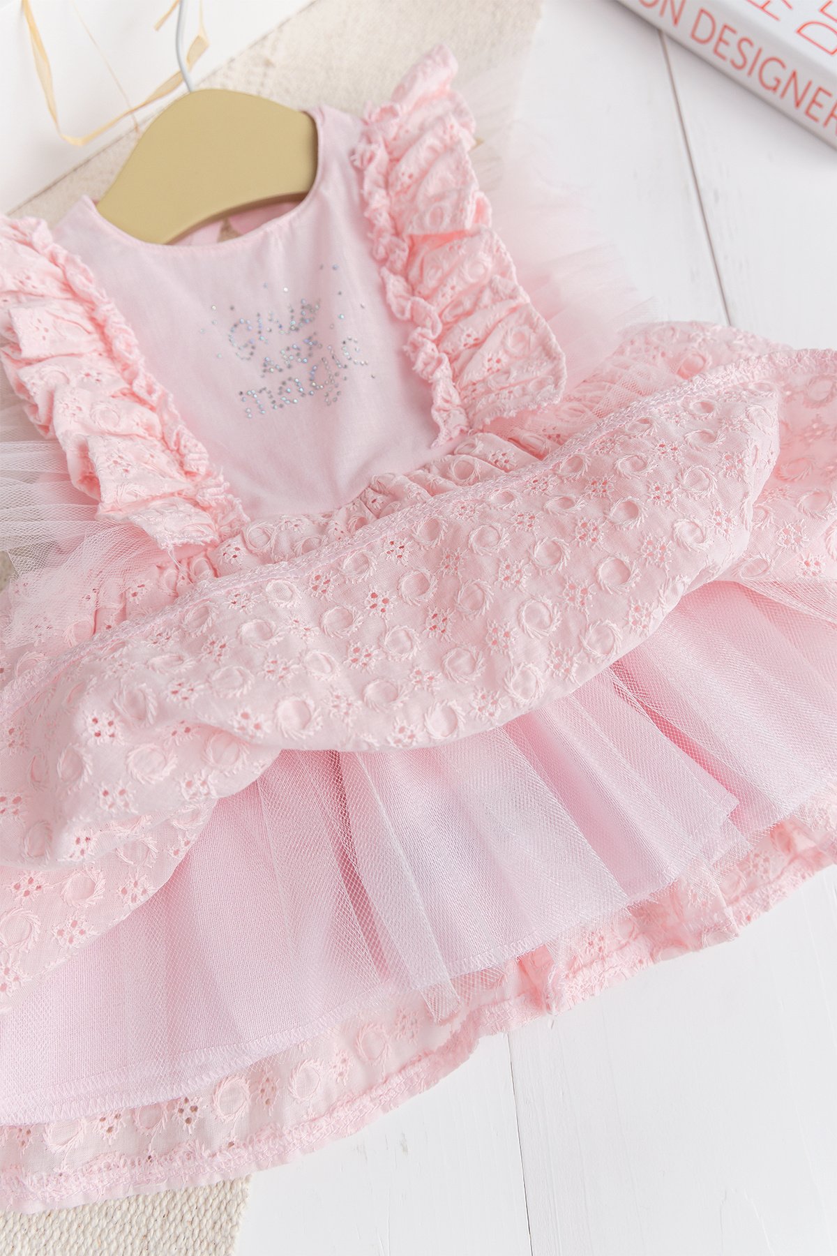 - Bebek elbisenin ön kısmında tül fırfır detayı mevcuttur.