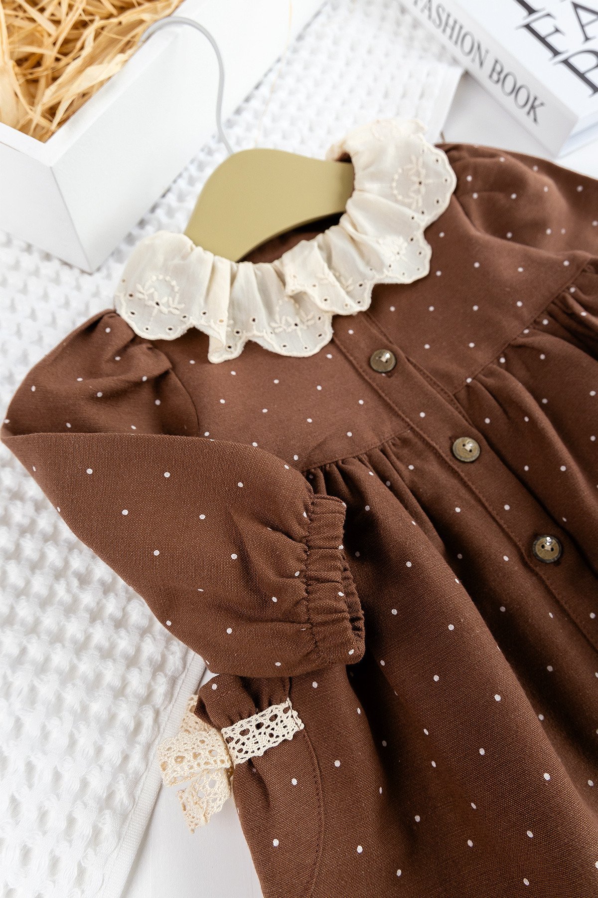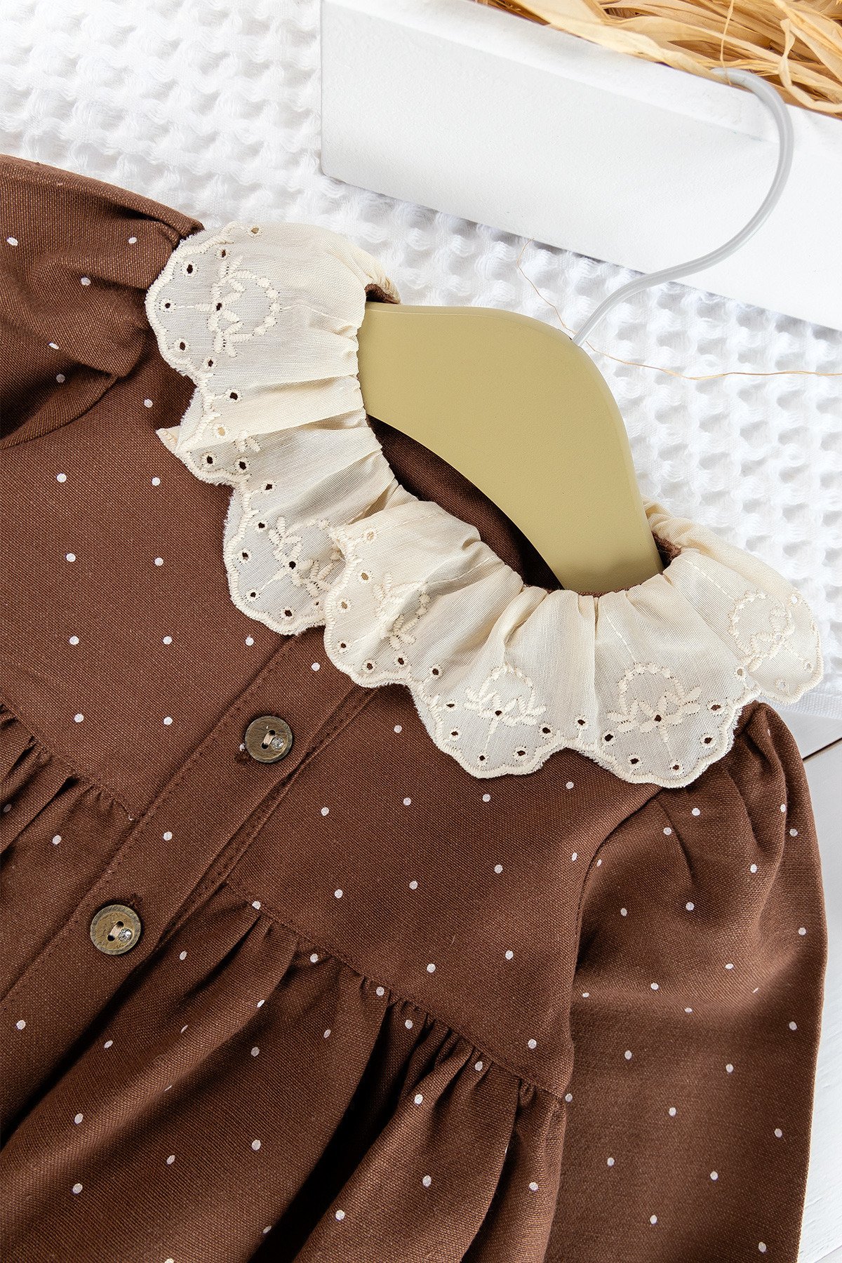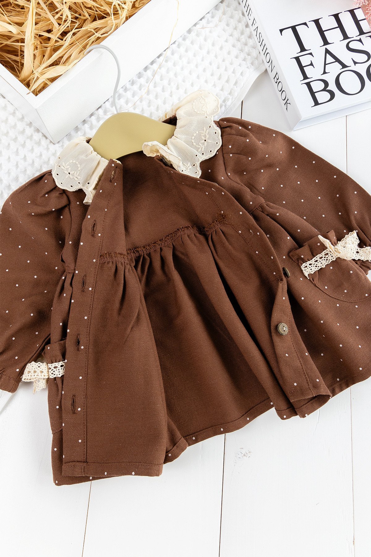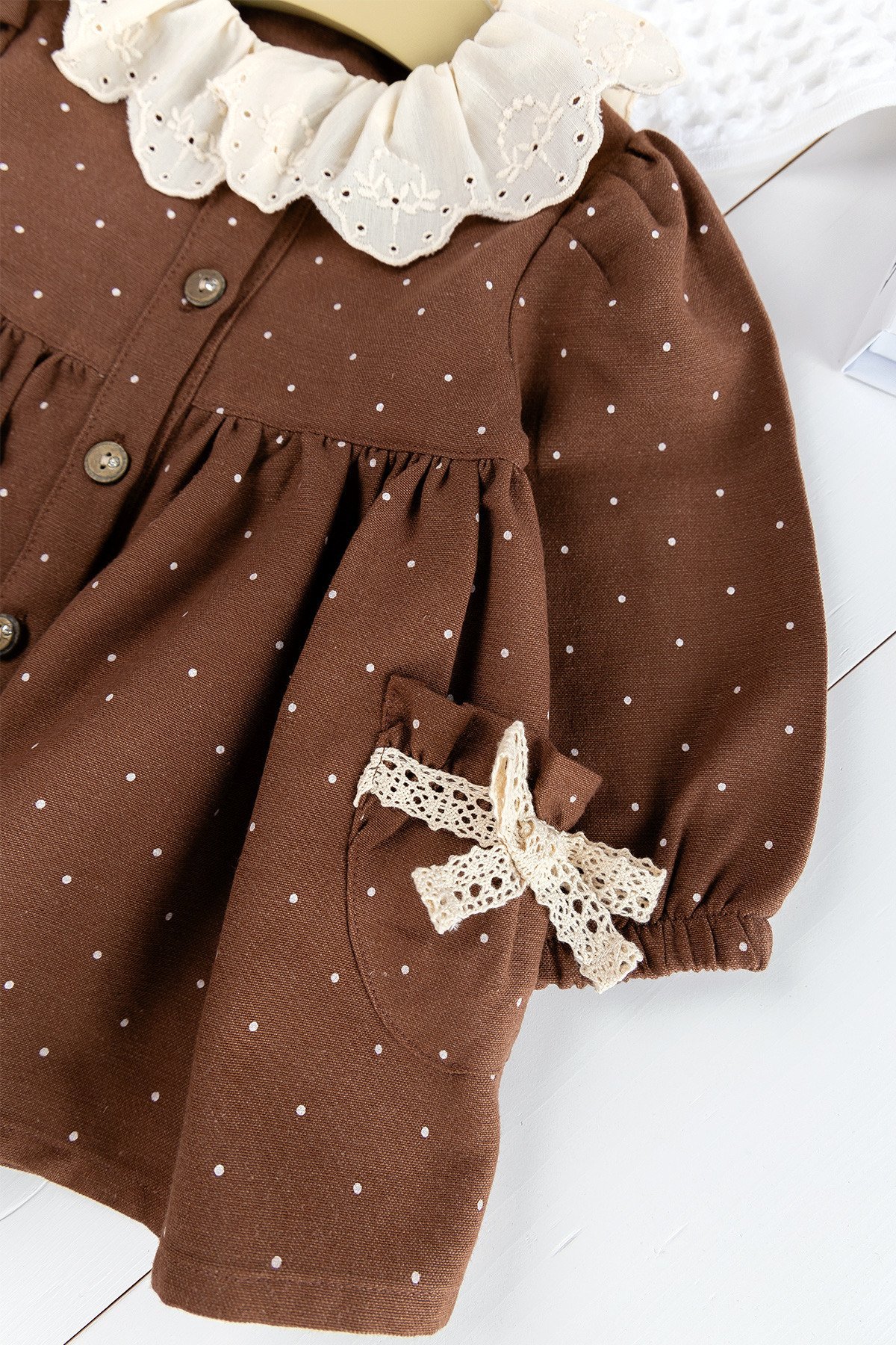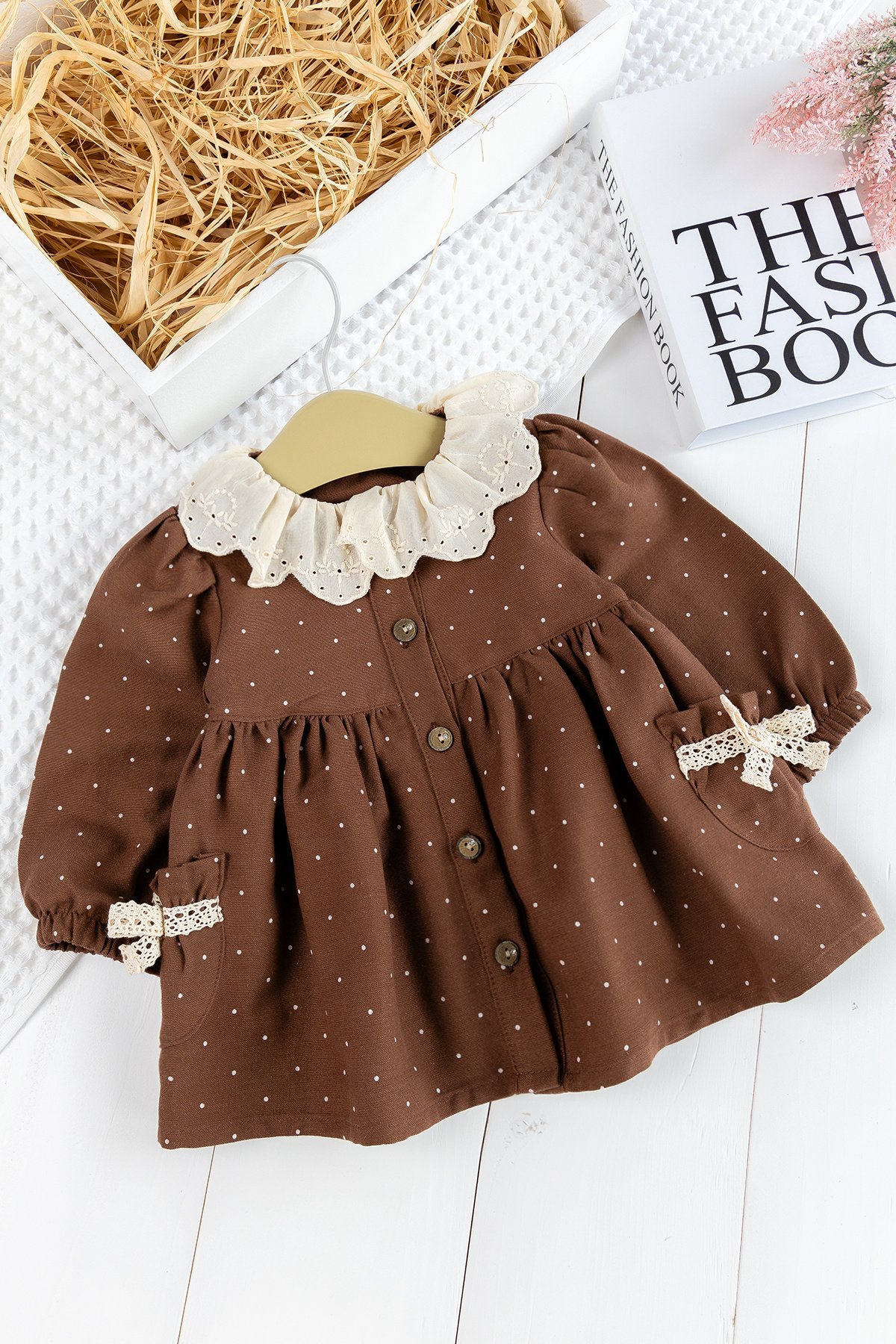 Fisto Yakalı Puantiyeli Önden Düğmeli Kız Bebek Elbise